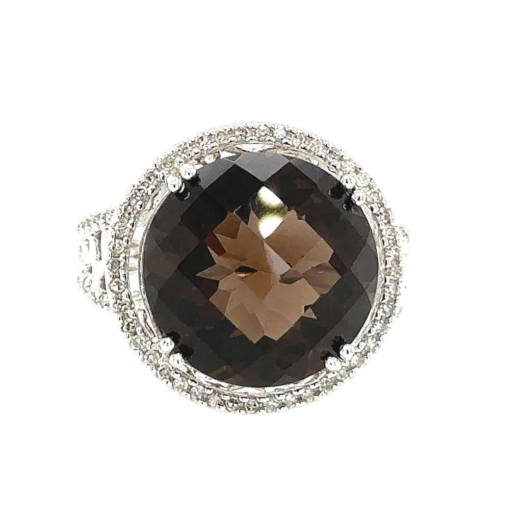 ANELLO IN ORO BIANCO 14K 7.90 GR CON SMOKY QUARTZ DA 12.30 CARATI + DIAMANTI PER 0.52 CARATI COLORE F- PUREZZA SI TAGLIA 7 - CERTIFICATO GEMMOLOGICO MAROZ DIAMONDS LTD MEMBRO ISRAEL DIAMOND EXCHANGE - RNG30513