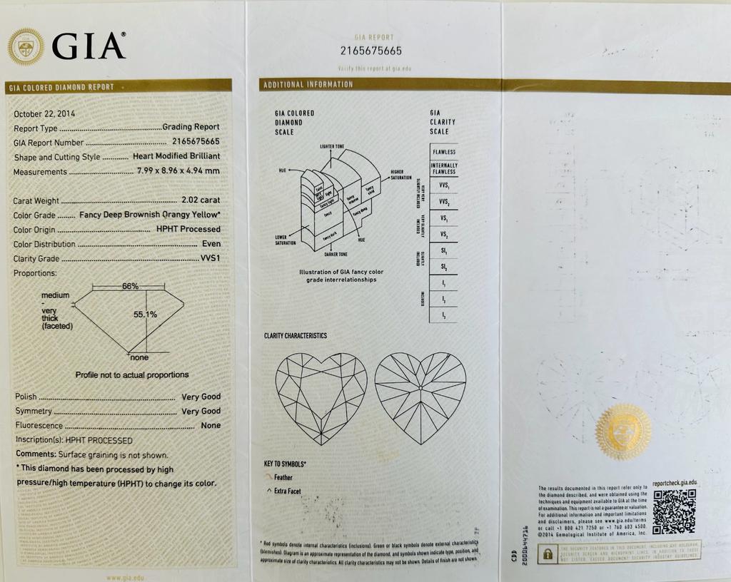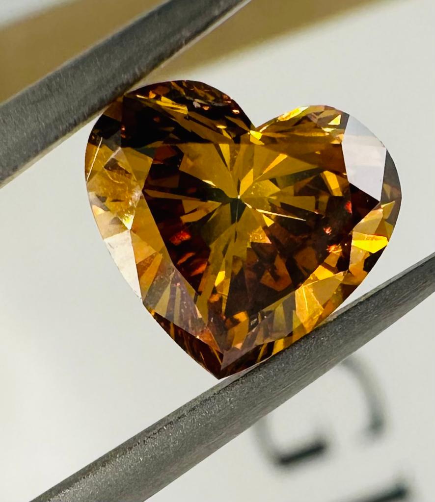DIAMANTE 2,02 CARATI COLORE FANCY MARRONCINO GIALLO ARANCIATO INTENSO - PUREZZA VVS1 - TAGLIO CUORE - SINTETICO HPHT -CERTIFICATO GIA - MH30402
