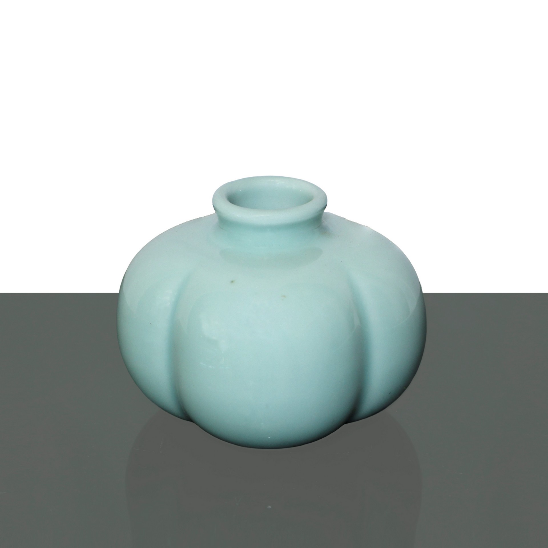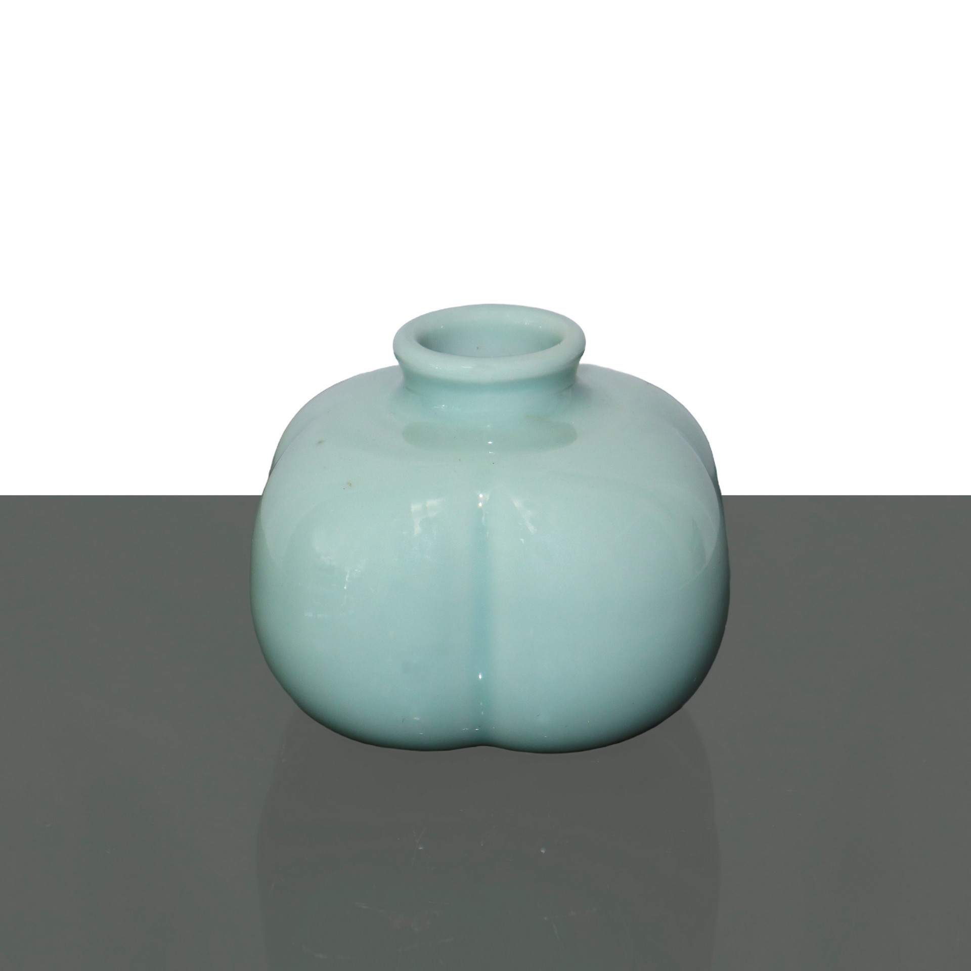 Vasetto in porcellana a smalto celadon della Dinastia Qing, Yong Zeng period H cm 7,5 x 8,5 Presenta caratteri cinesi alla base Presenta caratteri cinesi alla base