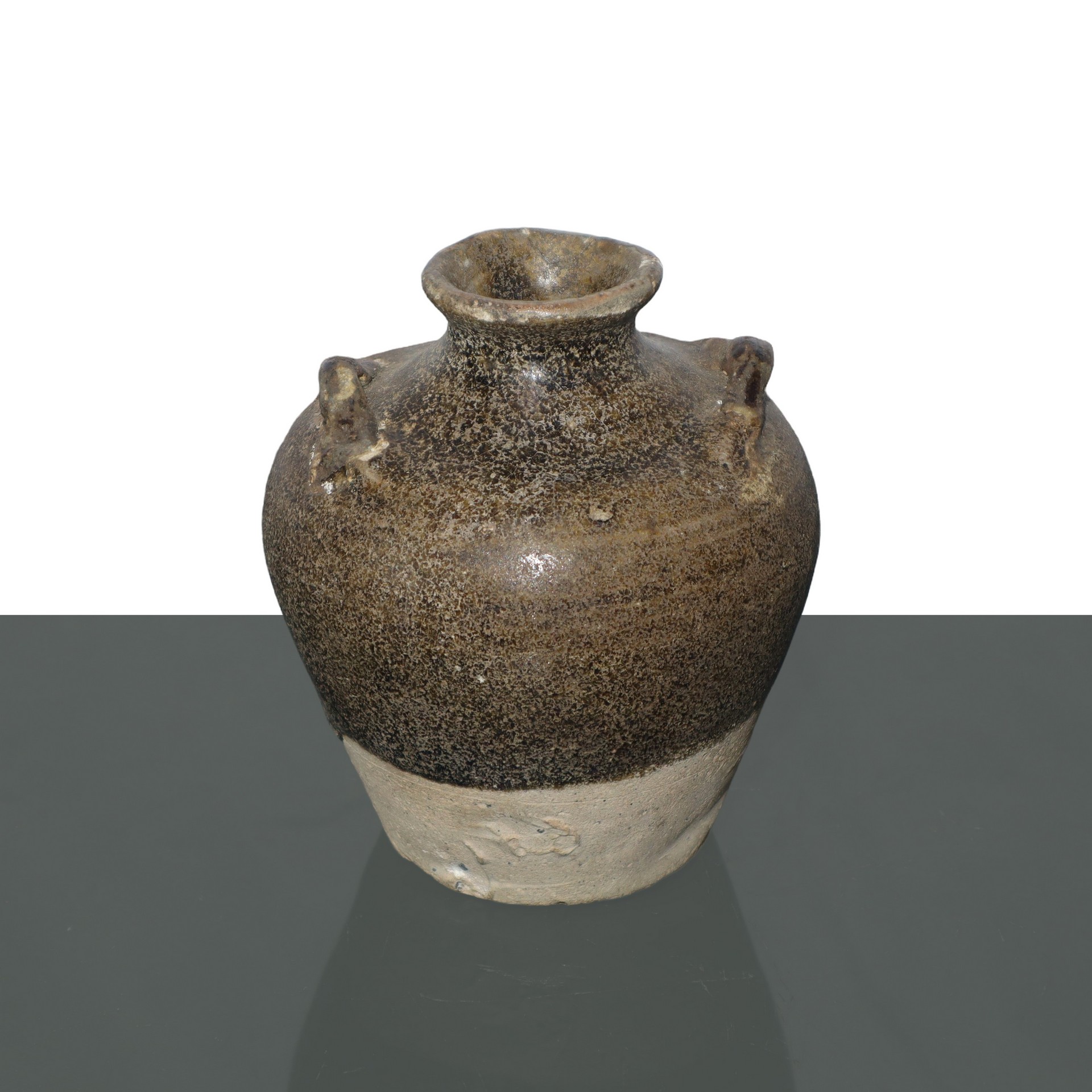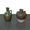 Brocca, orcio e vaso con manico verde rame, orcio color bruno con manici iansati e vaso color turchese, China, 18° secolo brocca H cm 10 - orcio H cm 9.5 - vaso H cm 15 N. 3 pezzi: brocca con manico verde rame, orcio color bruno con manici iansati e vaso color turcheseN. 3 pezzi: brocca con manico verde rame, orcio color bruno con manici iansati e vaso color turchese