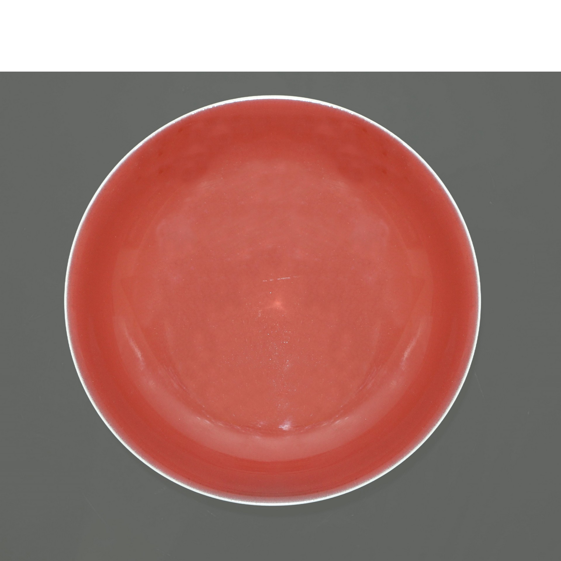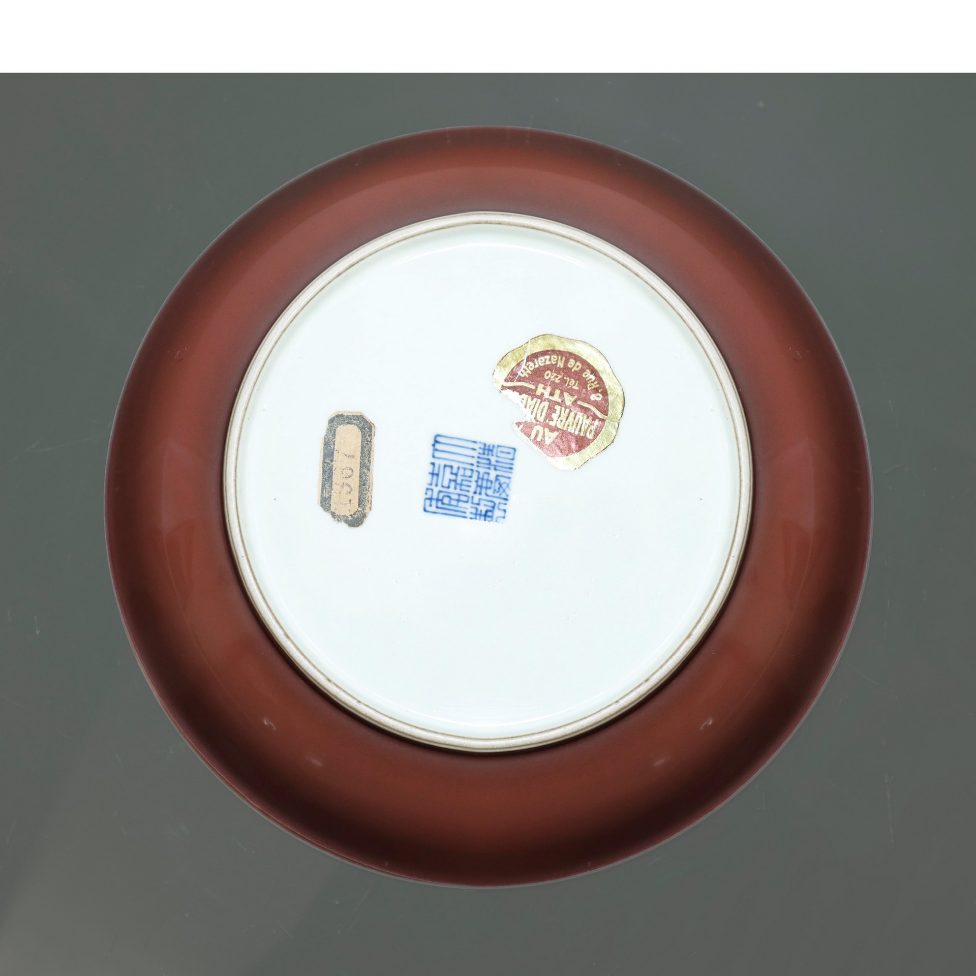 Piatto in ceramica cinese smaltato rosso, appartenente alla dinastia Qing, Nineteen° secolo