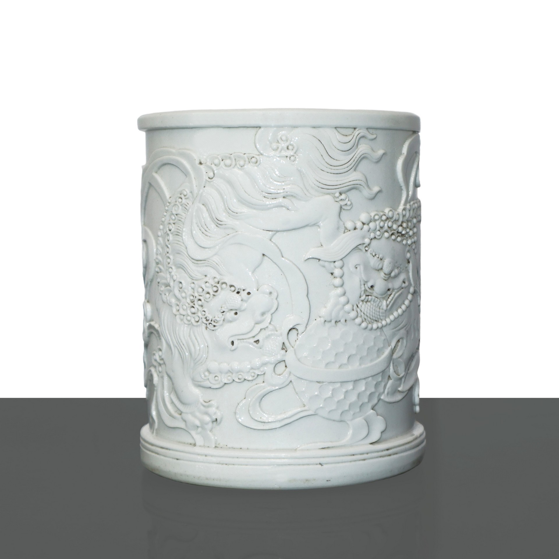 Lotto 38 | Portapennelli scolpito con raffigurazioni di leoni e fiori, 20° secolo