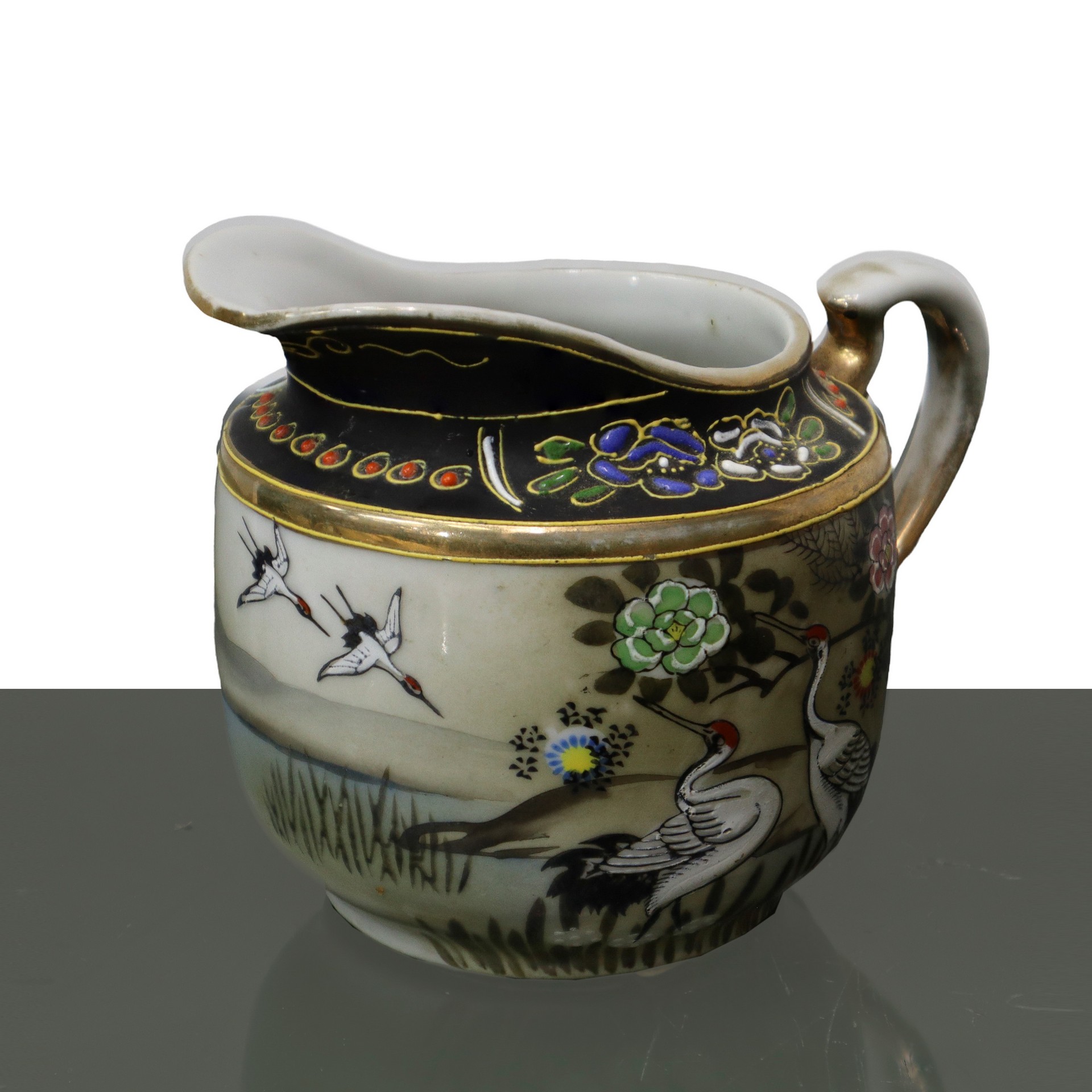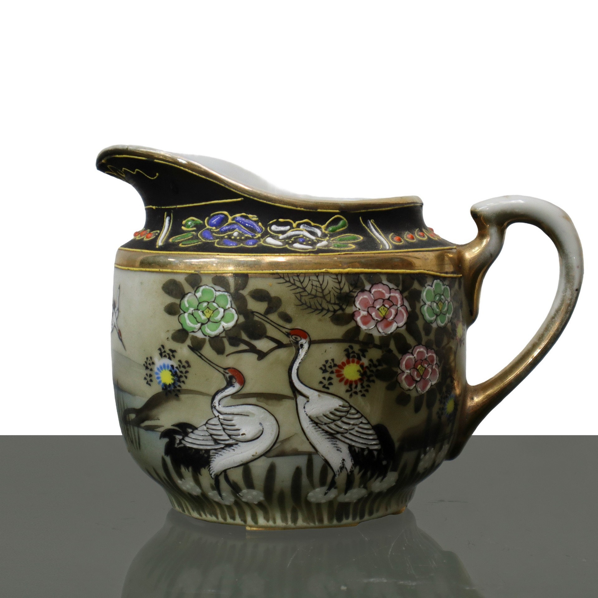 Lattiera giapponese in ceramica con decorazioni smaltate H cm 8.8x12.5 Lattiera in ceramica giapponese con decorazione di paesaggio giapponese, con tipico edifico giapponese e aironi. Decori floreali in rosso, blu, verde, dorato. Timbro alla base.Lattiera in ceramica giapponese con decorazione di paesaggio giapponese, con tipico edifico giapponese e aironi. Decori floreali in rosso, blu, verde, dorato. Timbro alla base.
