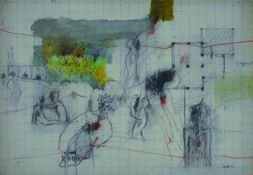Firmato, datato. MINO CERETTI (1930) - Senza titolo, 1963, Tecnica mista su carta, cm. 51 x 73, Firmato e datato in basso a destra. Prov. Collezione Privata