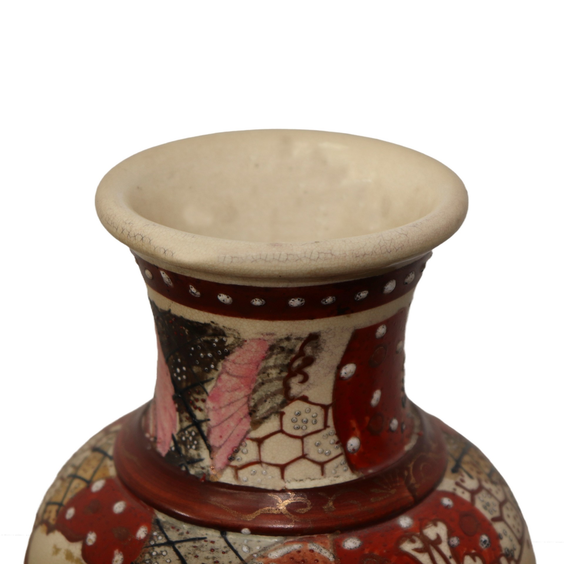 Vaso giapponese in porcellana Satsuma policromo e con dettagli dorati