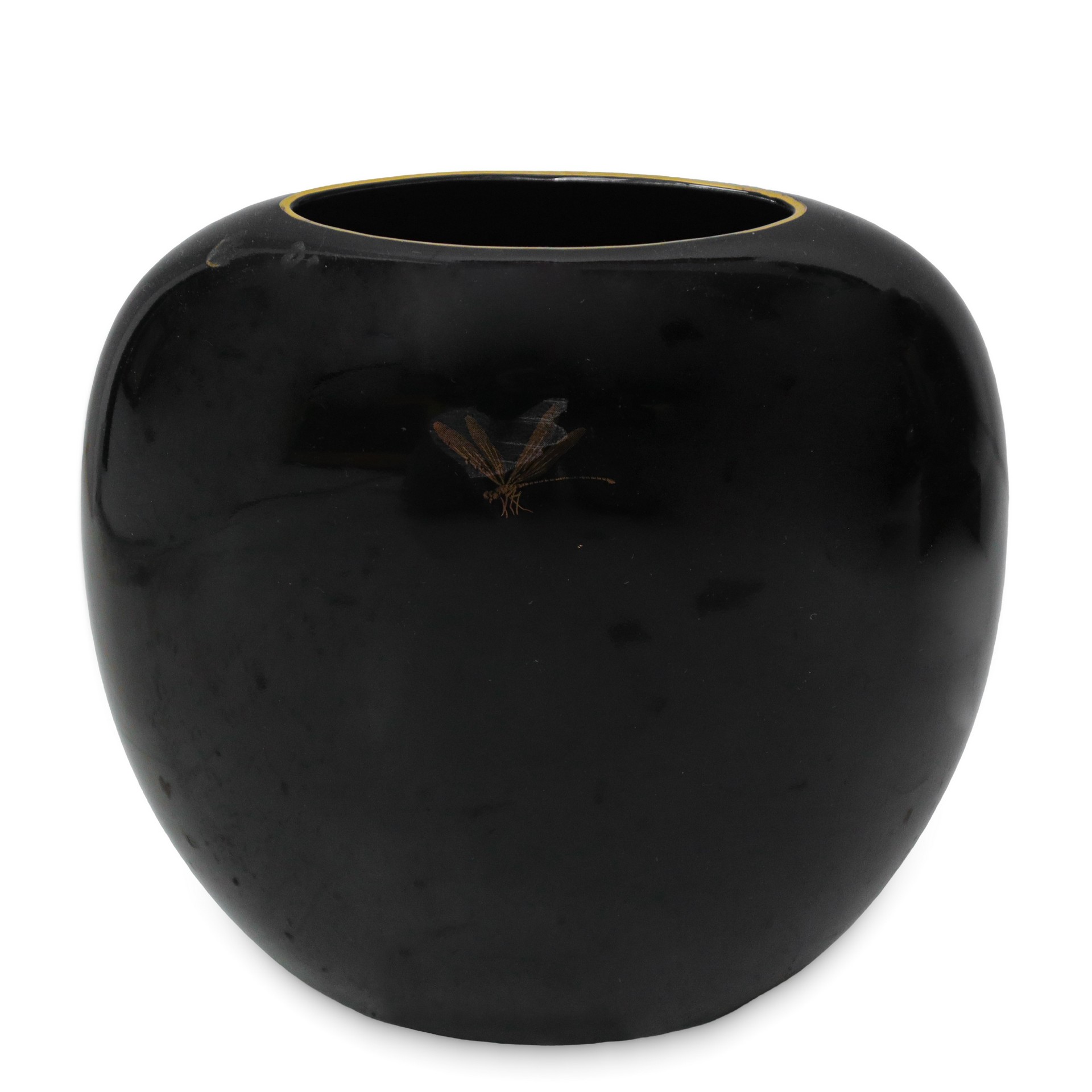 Shibata Japan - Vaso in porcellana, base nera con decorazioni floreali dorate H cm 22x21 Marchio alla baseMarchio alla base