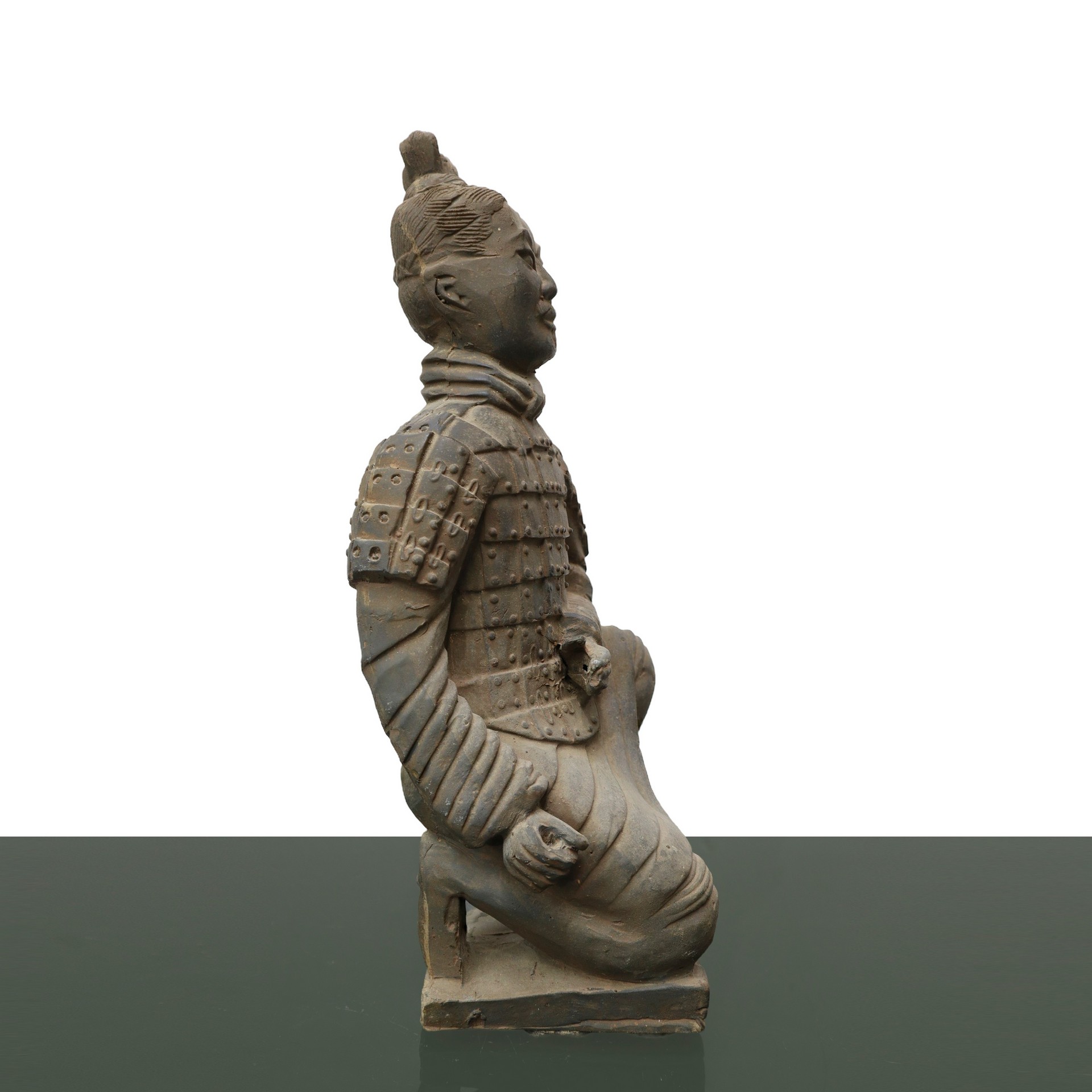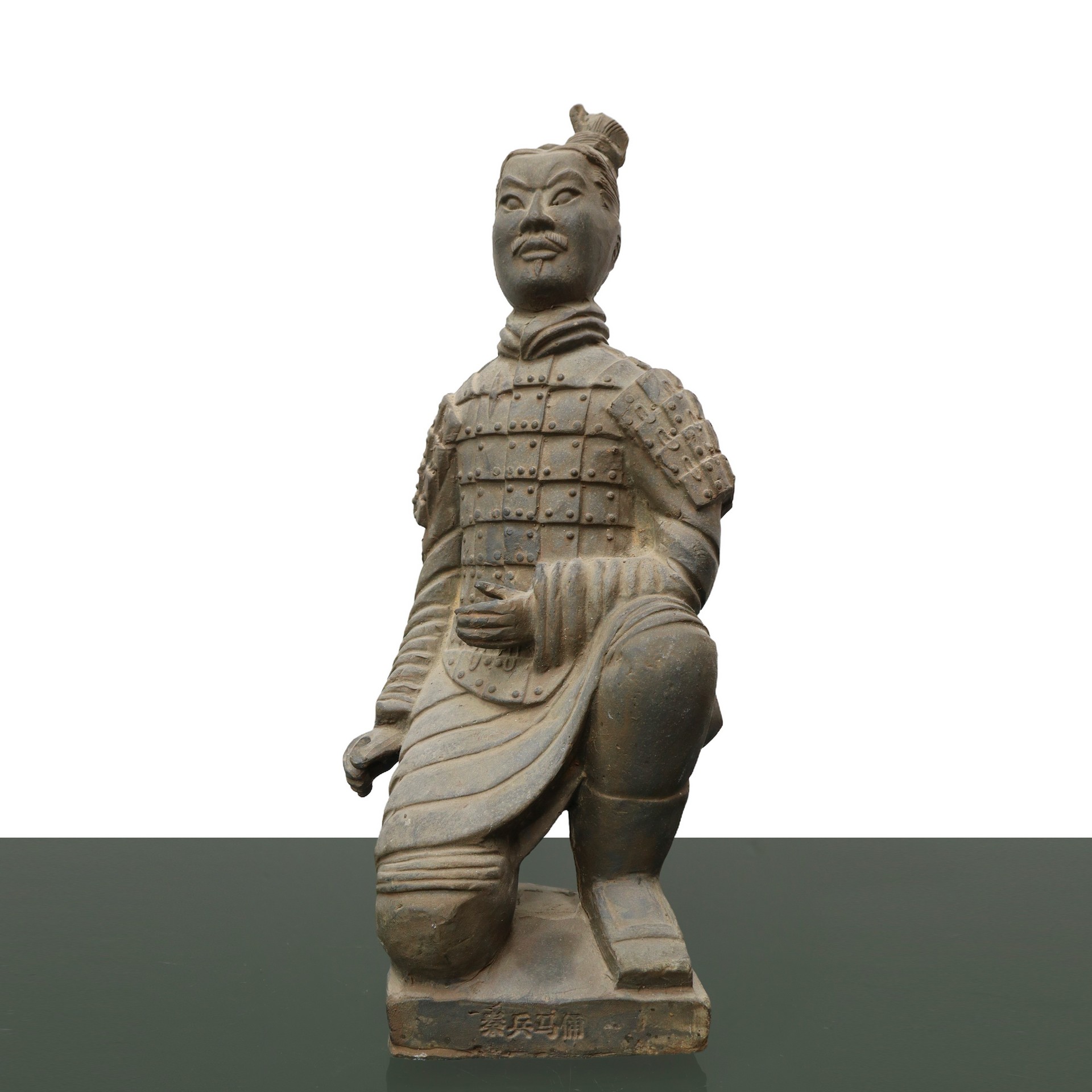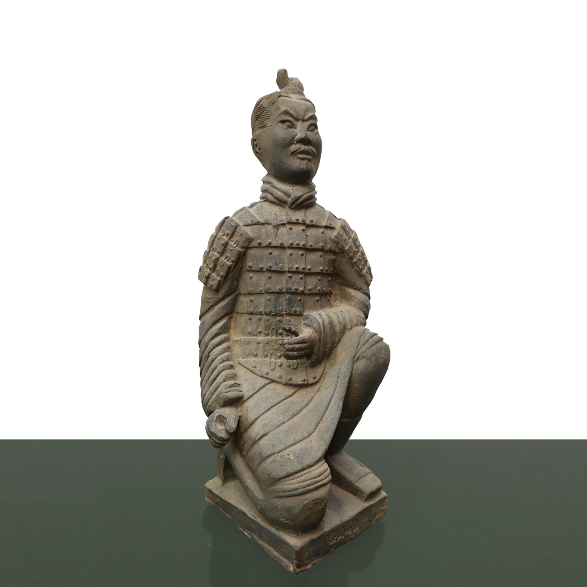 Statua guerriero cinese dell'imperatore H cm 28x12 Guerriero cinese inginocchiato. Incisioni con caratteri cinesi ala base. Manca l'arma che regge con le due mani.Guerriero cinese inginocchiato. Incisioni con caratteri cinesi ala base. Manca l'arma che regge con le due mani.