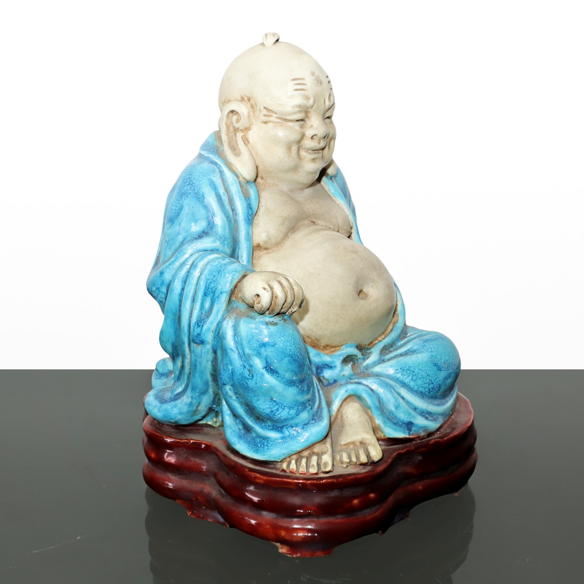 Lotto 169 | Buddha Pu-Tai ridente in ceramica smaltata nei colori del bianco e dell'azzurro