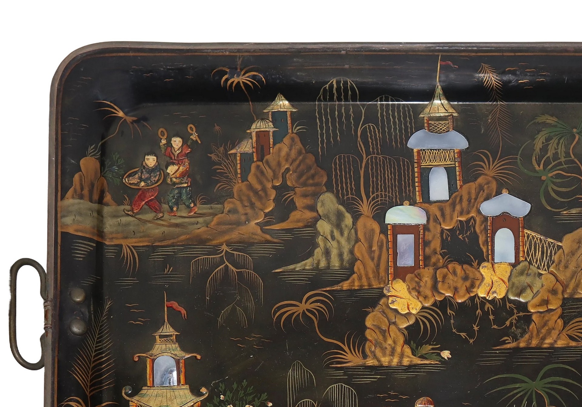Lotto 203 | Vassoio in metallo dipinto con scene e paesaggi cinesi, 19° secolo