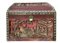 Scatola in legno laccato rosso H cm 28x36x21 XX secolo Figurazioni intagliate e dorate e borchie sui lati e sul coperchio.