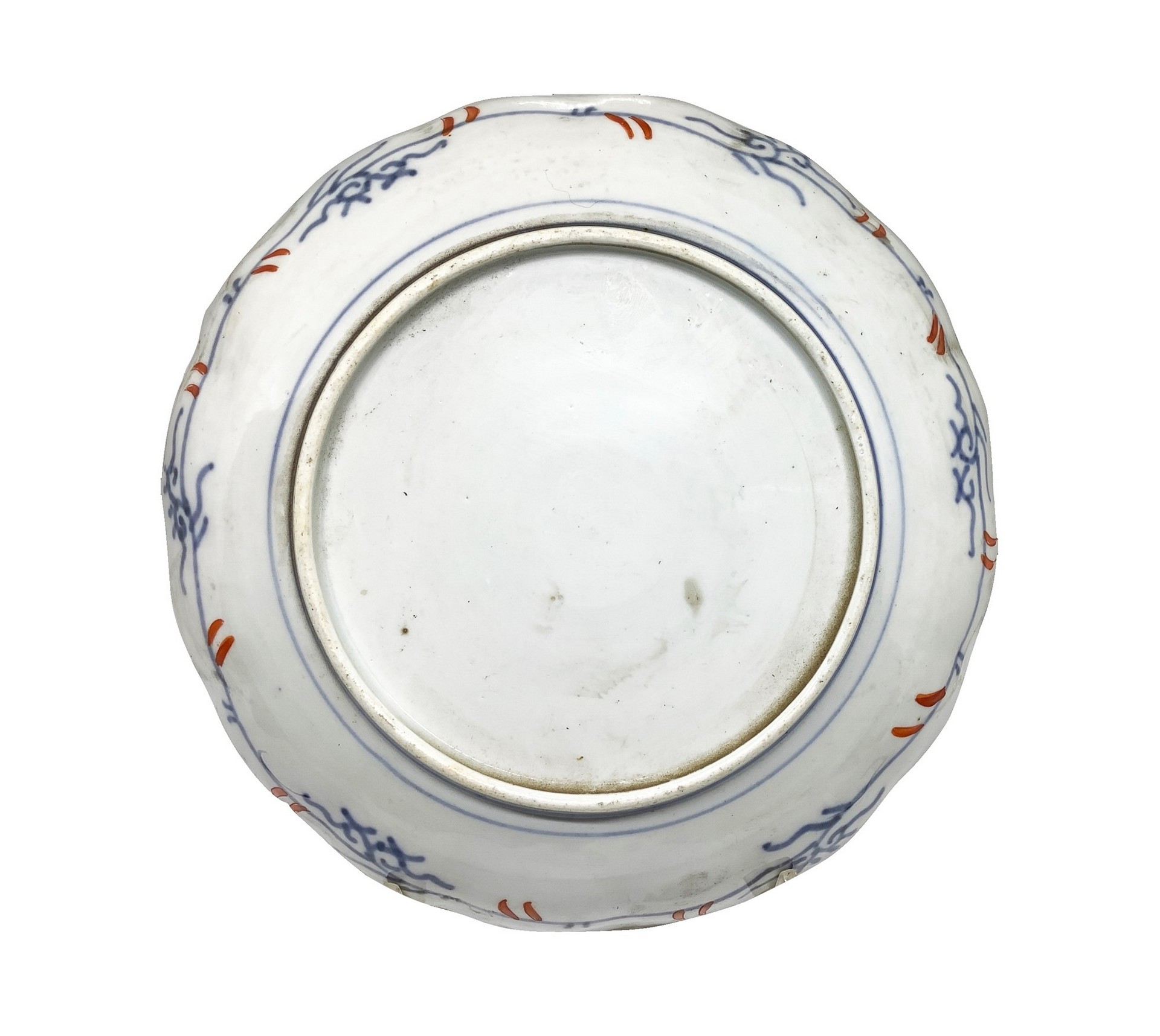 Piatto con decori cinesi nei colori blu e rosso su sfondo bianco Diametro 21 Porcellana