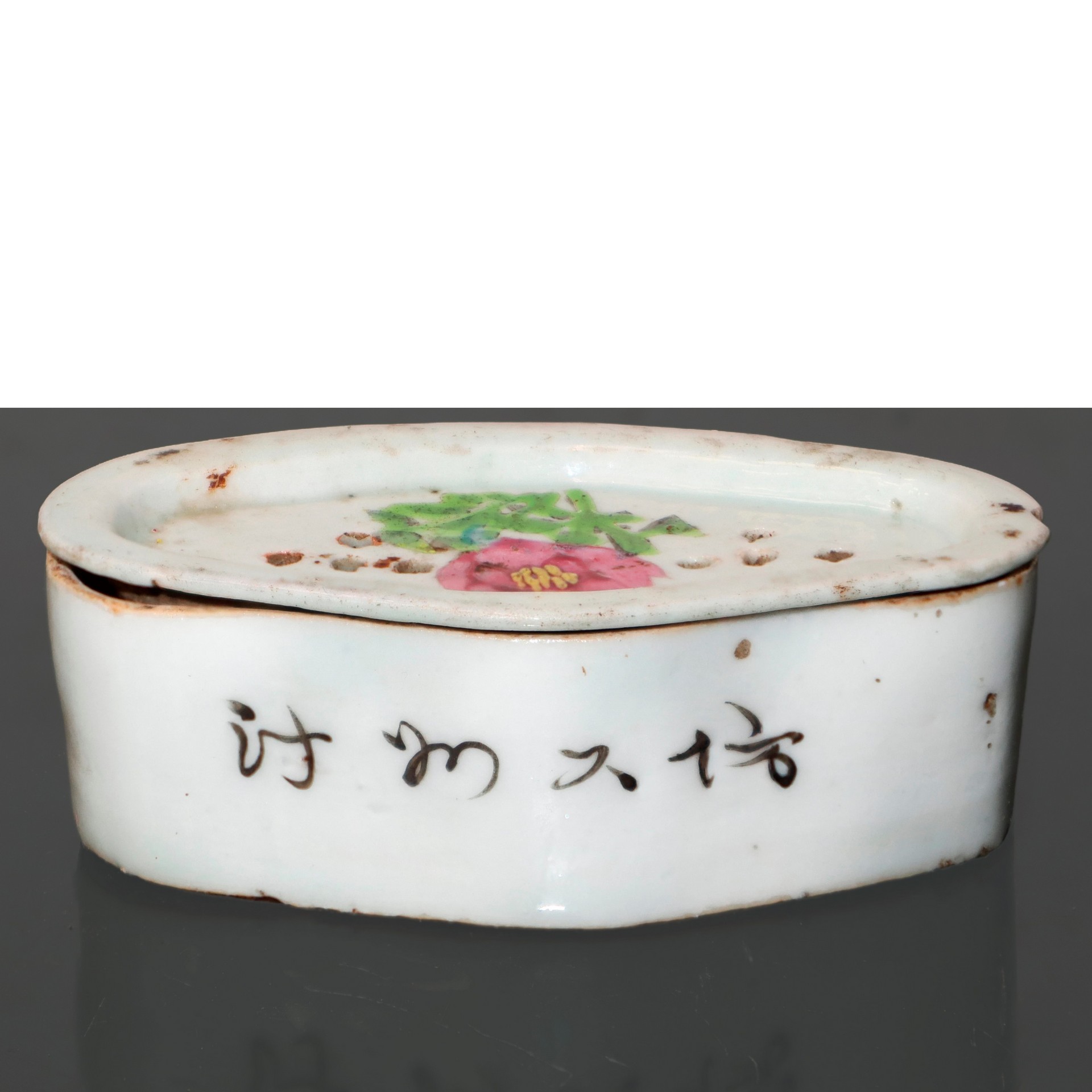 Coppia di portaincensi cinesi in porcellana, con decrazioni floreali h cm 4X11,5, h
