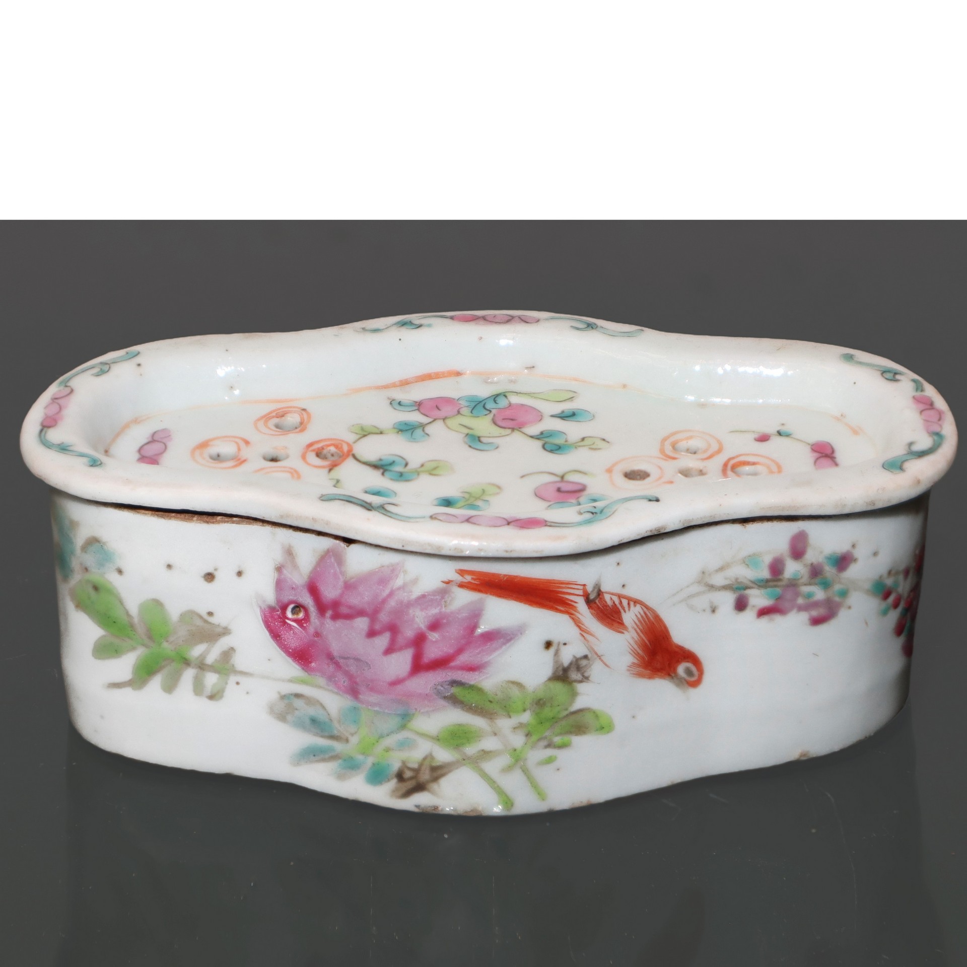Coppia di portaincensi cinesi in porcellana, con decrazioni floreali
