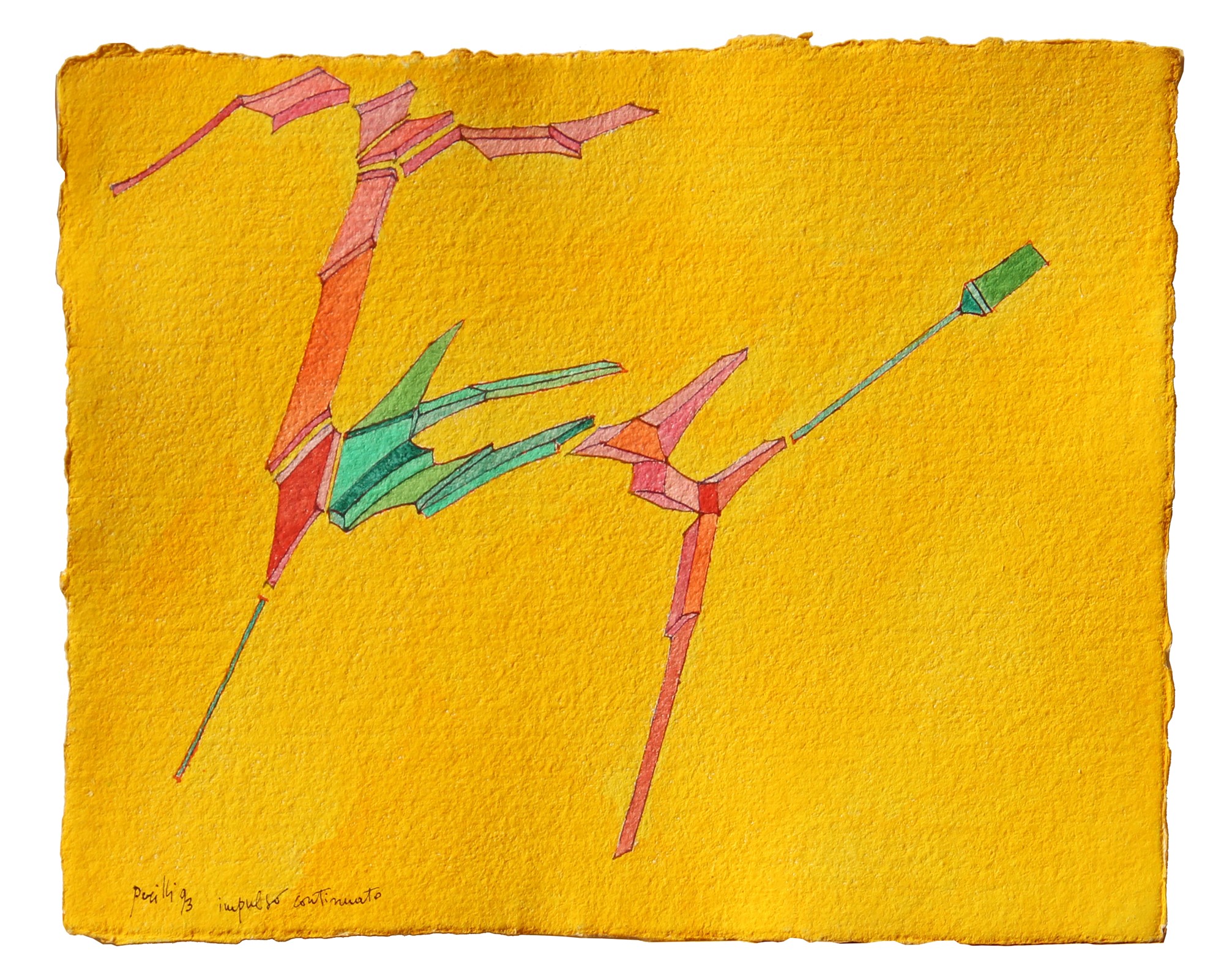 PERILLI Achille, Impulso continuato, 1993, acquarello e tecnica mista su cartoncino, cm 25x32