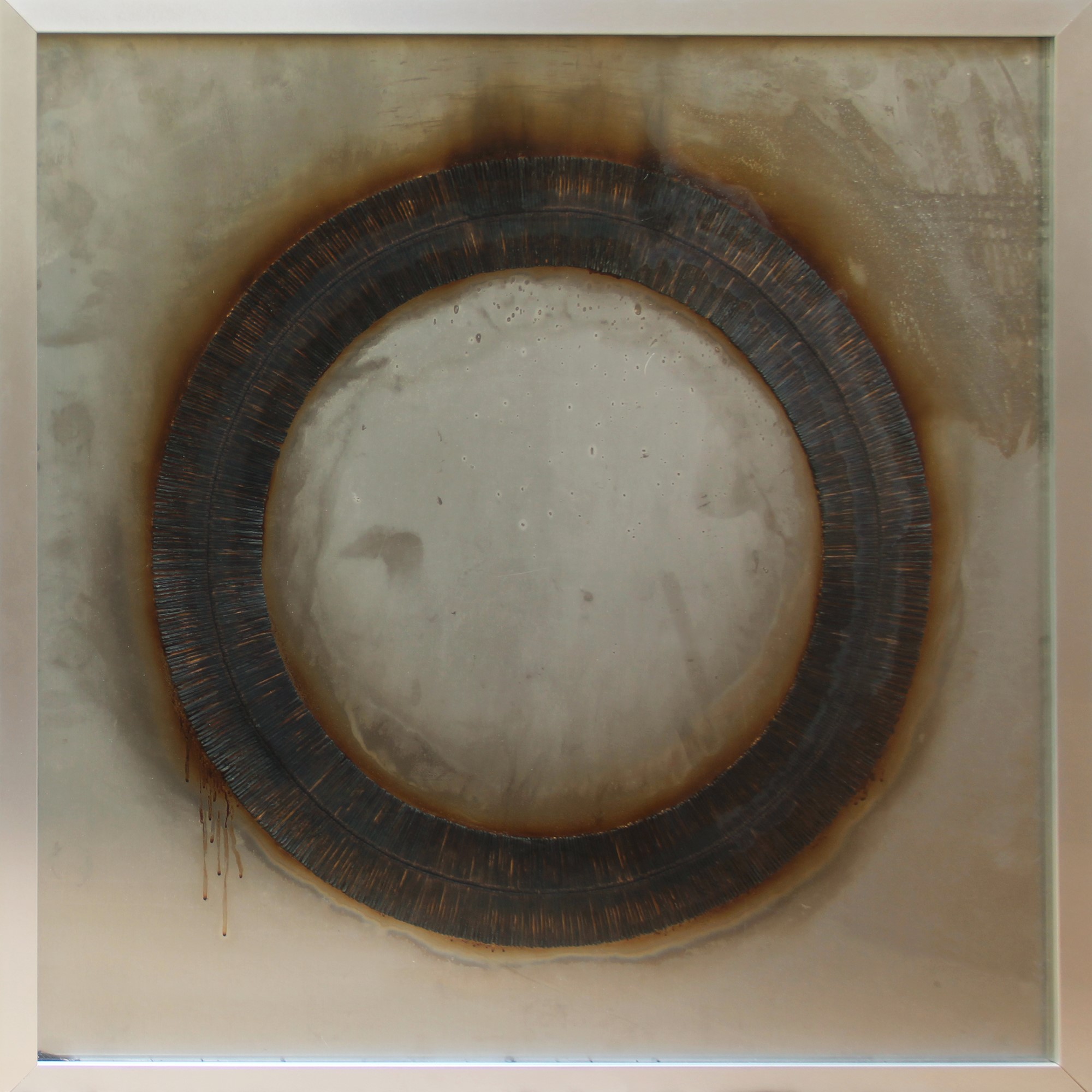 AUBERTIN Bernard, Dessin de feu, 1973, fiammiferi bruciati su alluminio, cm 90x90
