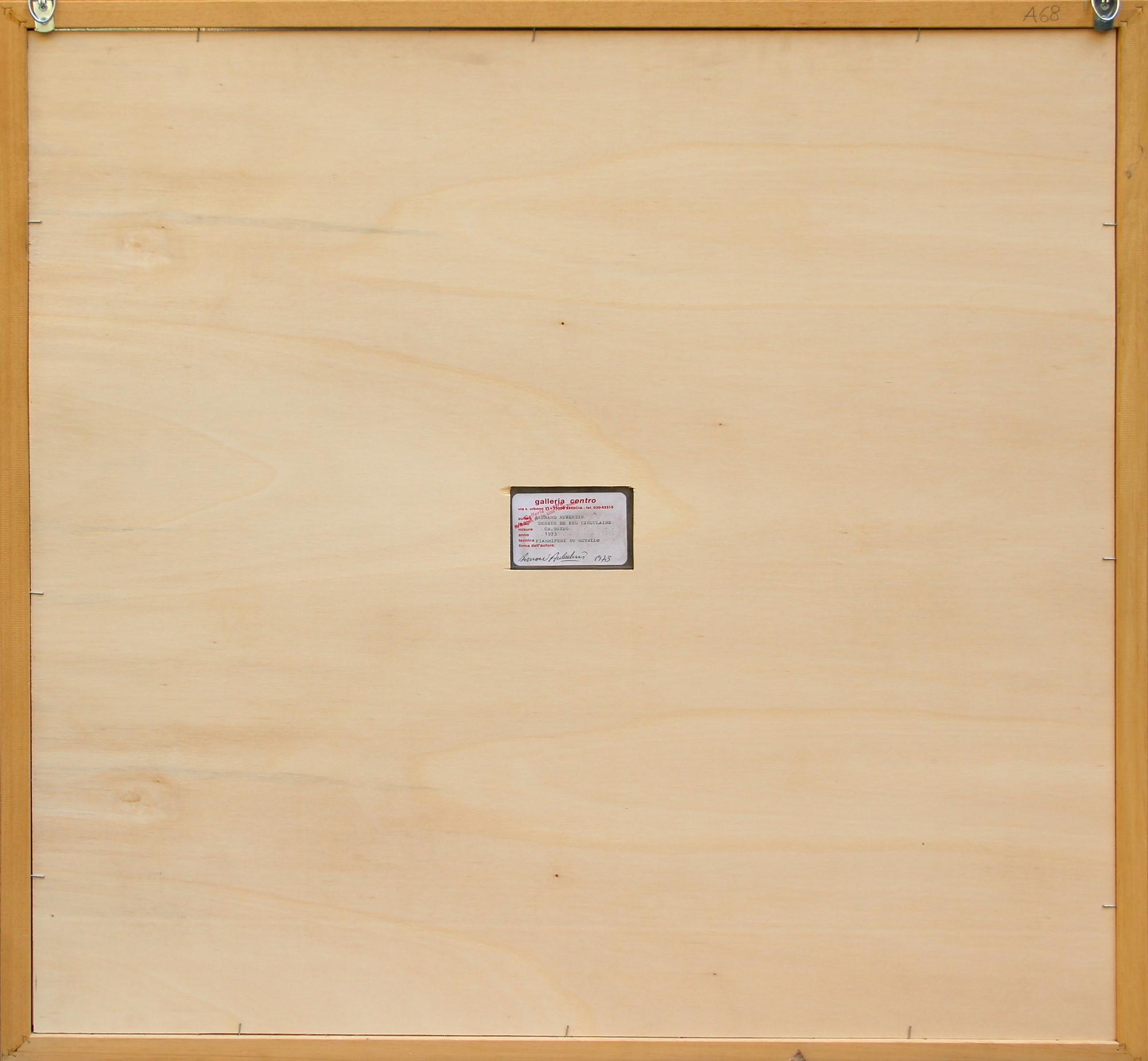 Etichetta di Galleria Centro, con firma dell'artista (al retro)