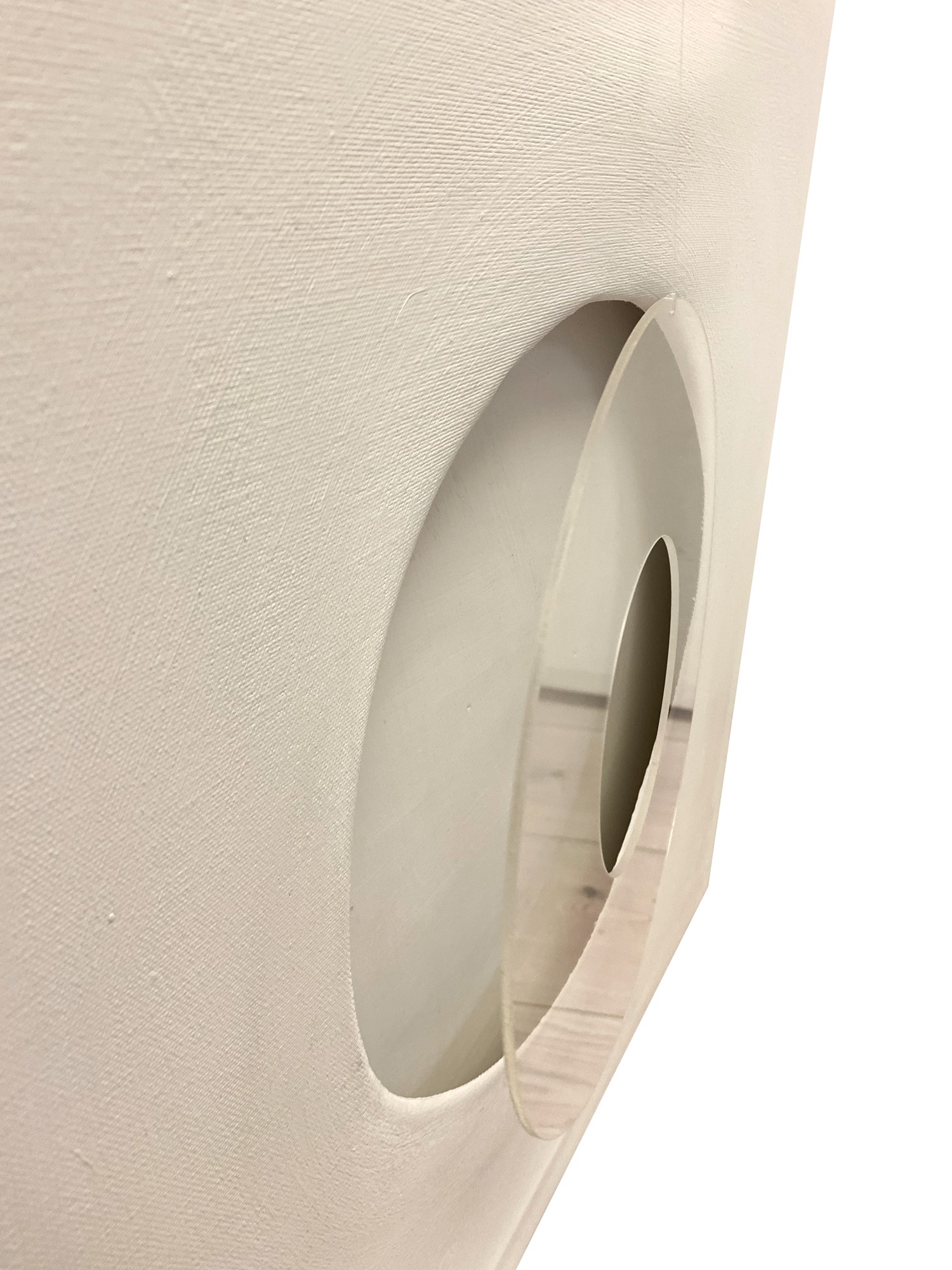 CAMPESAN Sara, Immagine circolare, 1965, acrilico su tela e perspex su tavola, cm. 62x62