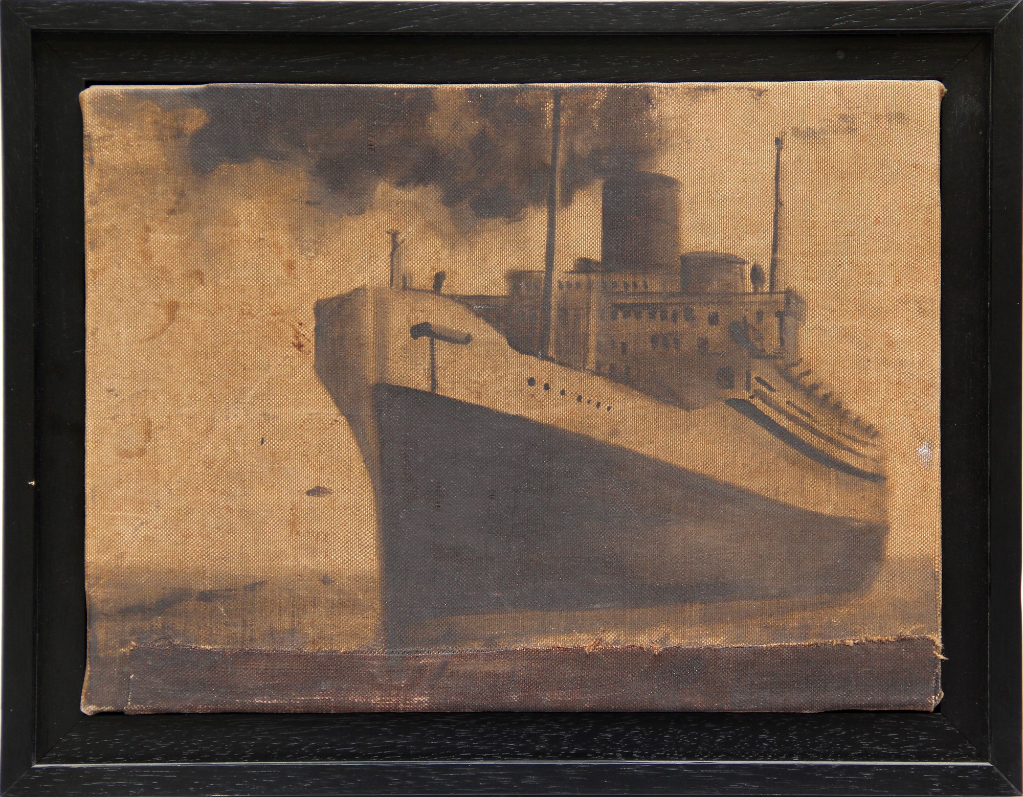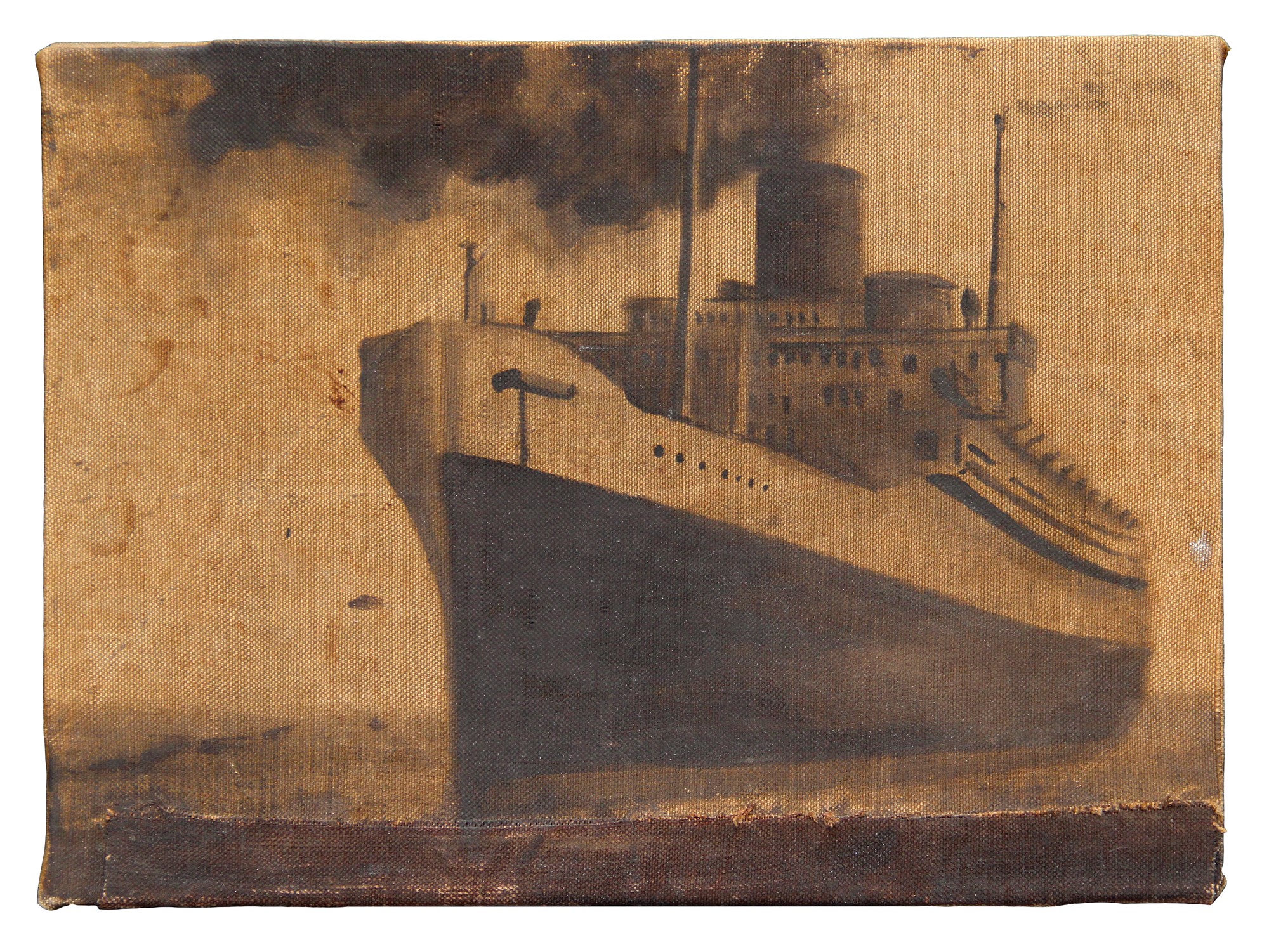 PIGNATELLI Luca, Nave, 2005, olio su telone di copertura di vagone ferroviario, cm 31x43