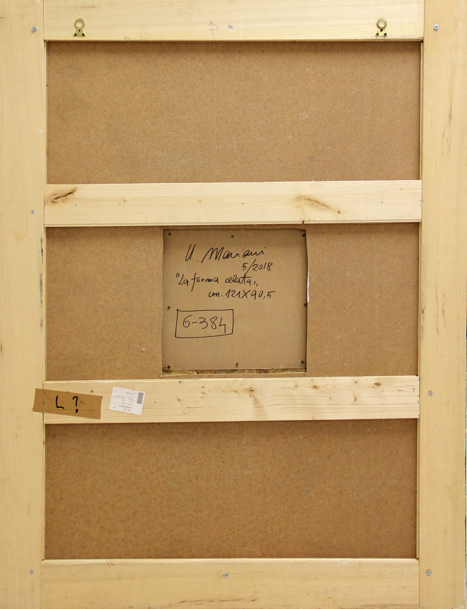 Firma, data, titolo, misura, numerazione "U. Mariani, 5/2018, La forma celata, cm 121x90,5, 6-384" (al retro)