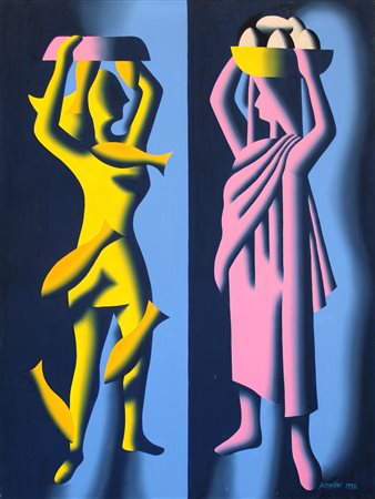 KOSTABI Mark, Two cultures (balance of trade), 1992, olio su tela, cm 91,5x122