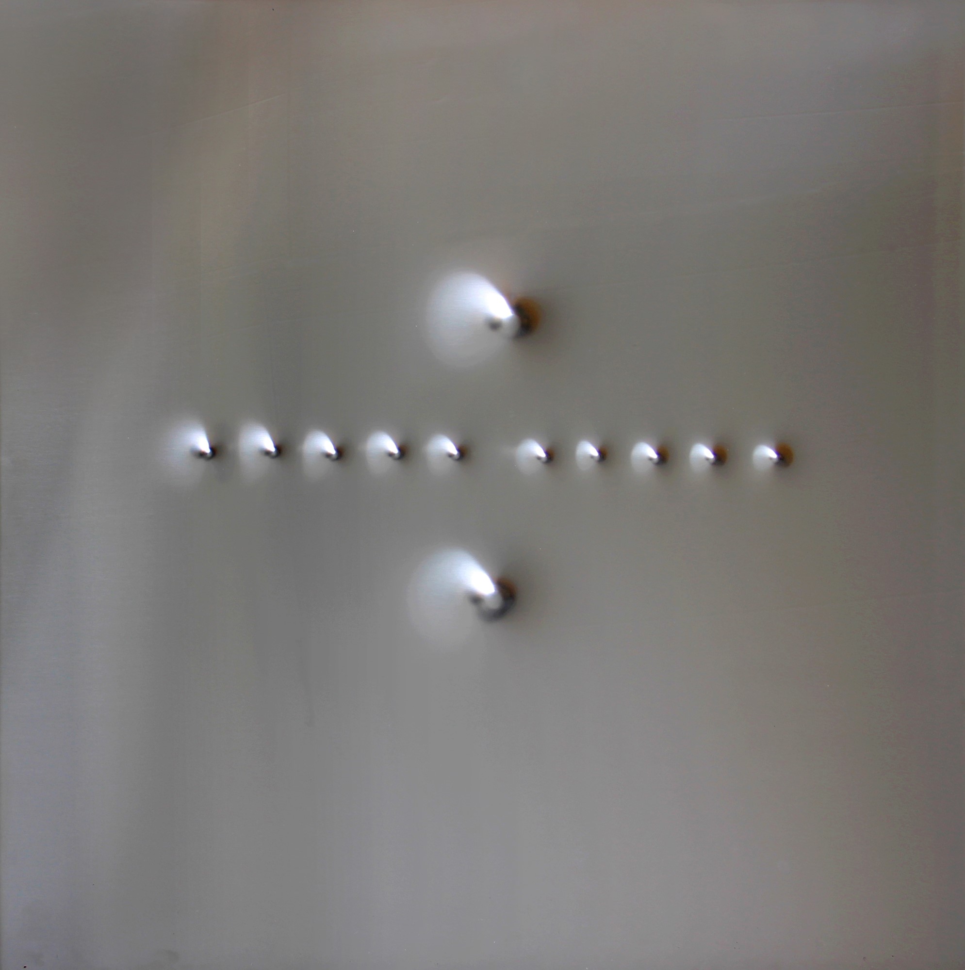 BRESCIANINI Angelo, BAA021751 (N. 12 spari pistola cal. 38, fucile cal. 12), , N. 12 spari di pistola cal. 38, fucile cal. 12 su lastra di acciaio inox, cm 100x100
