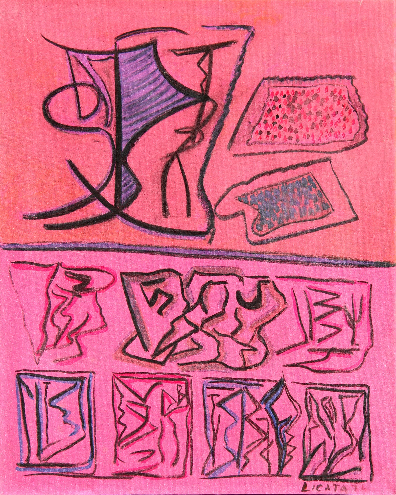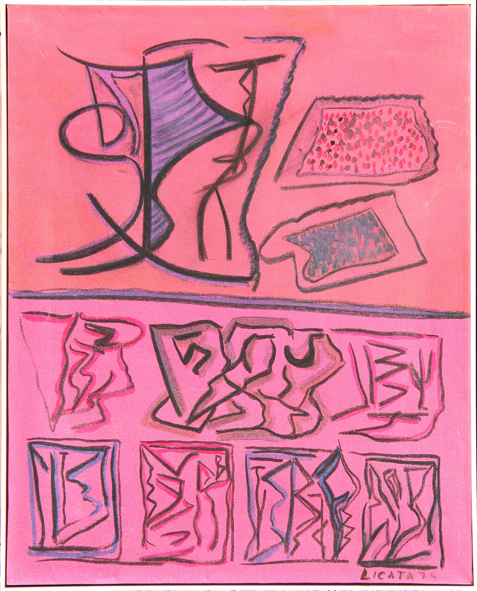 LICATA Riccardo, Senza titolo, 1974, acrilico e tecnica mista su tela, cm 50x40