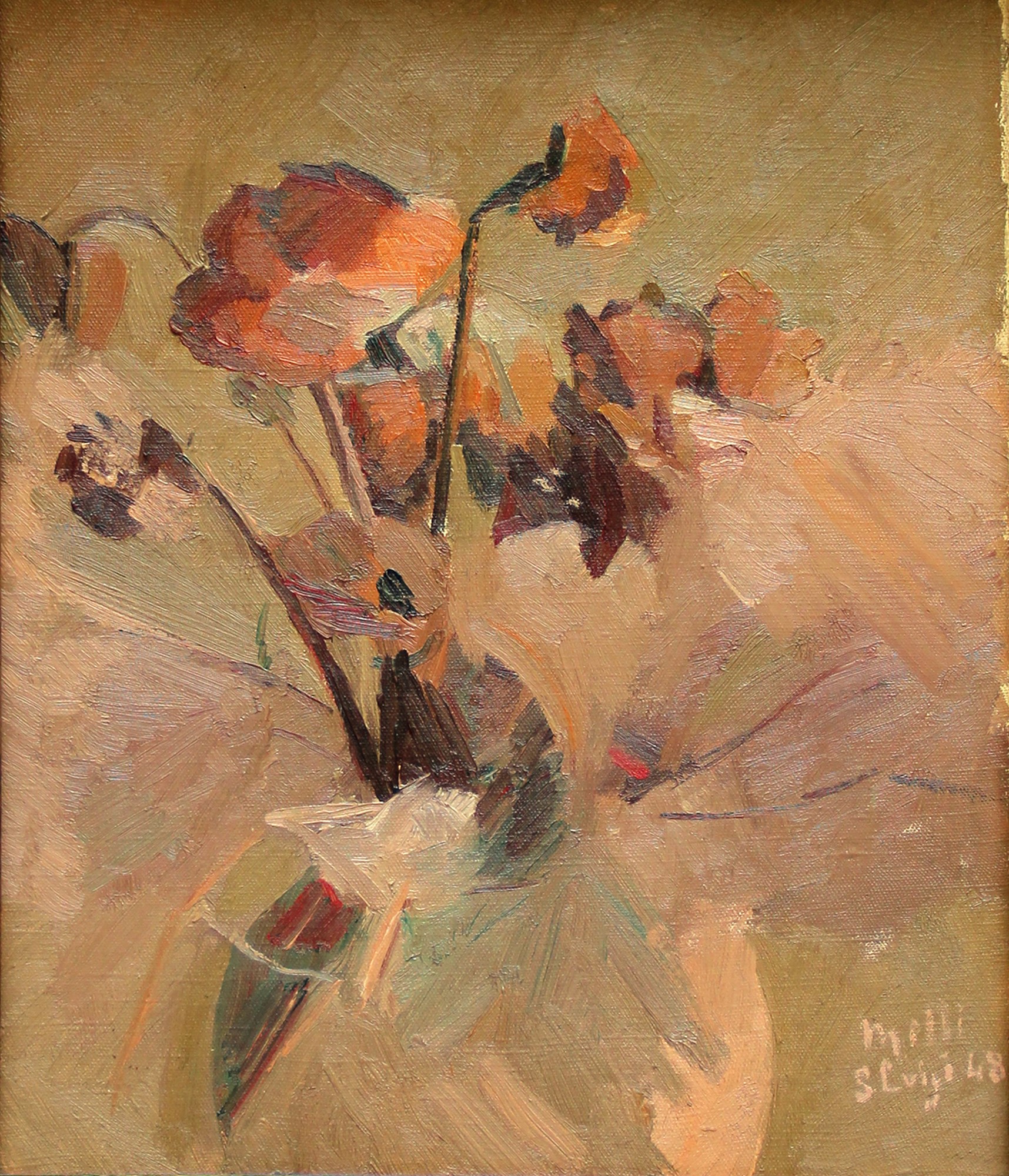 MELLI Roberto, Senza titolo (fiori), 1948, olio su tela, cm 40x33