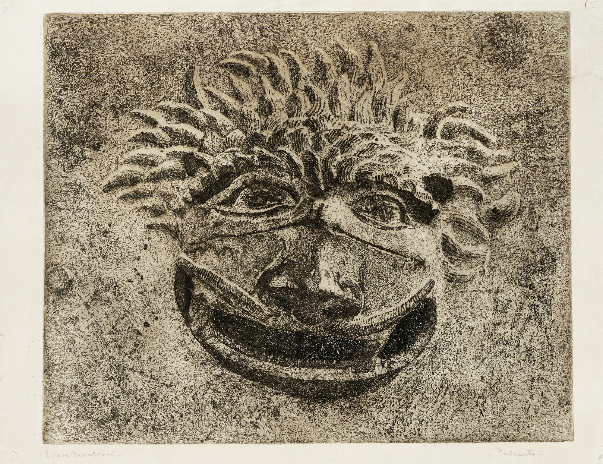 2) Pulsanti. Acquaforte. mm 310x390. Foglio: mm 345x450. Firmata a matita in basso a sinistra, titolata a matita in basso a destra.