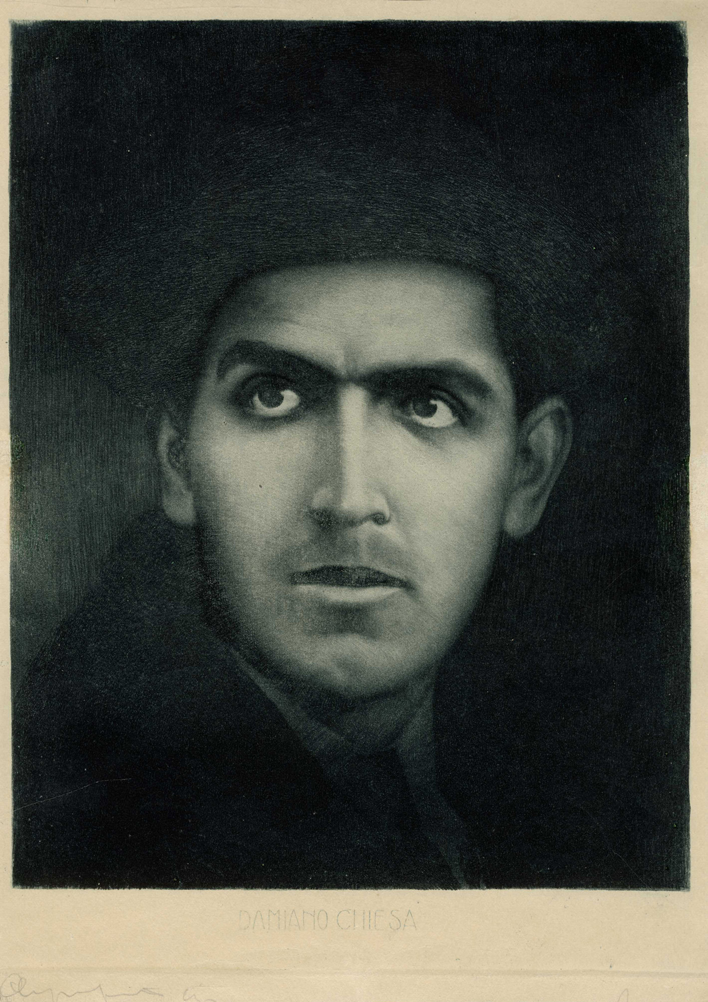 SI AGGIUNGE: Id., Damiano Chiesa. 1916 ca. Acquatinta. mm 240x183. Foglio: mm 255x184. Titolato in lastra al margine inferiore. Esemplare rifilato entro i margini laterali ed il margine superiore della lastra. Nome d'artista iscritto a matita al verso.