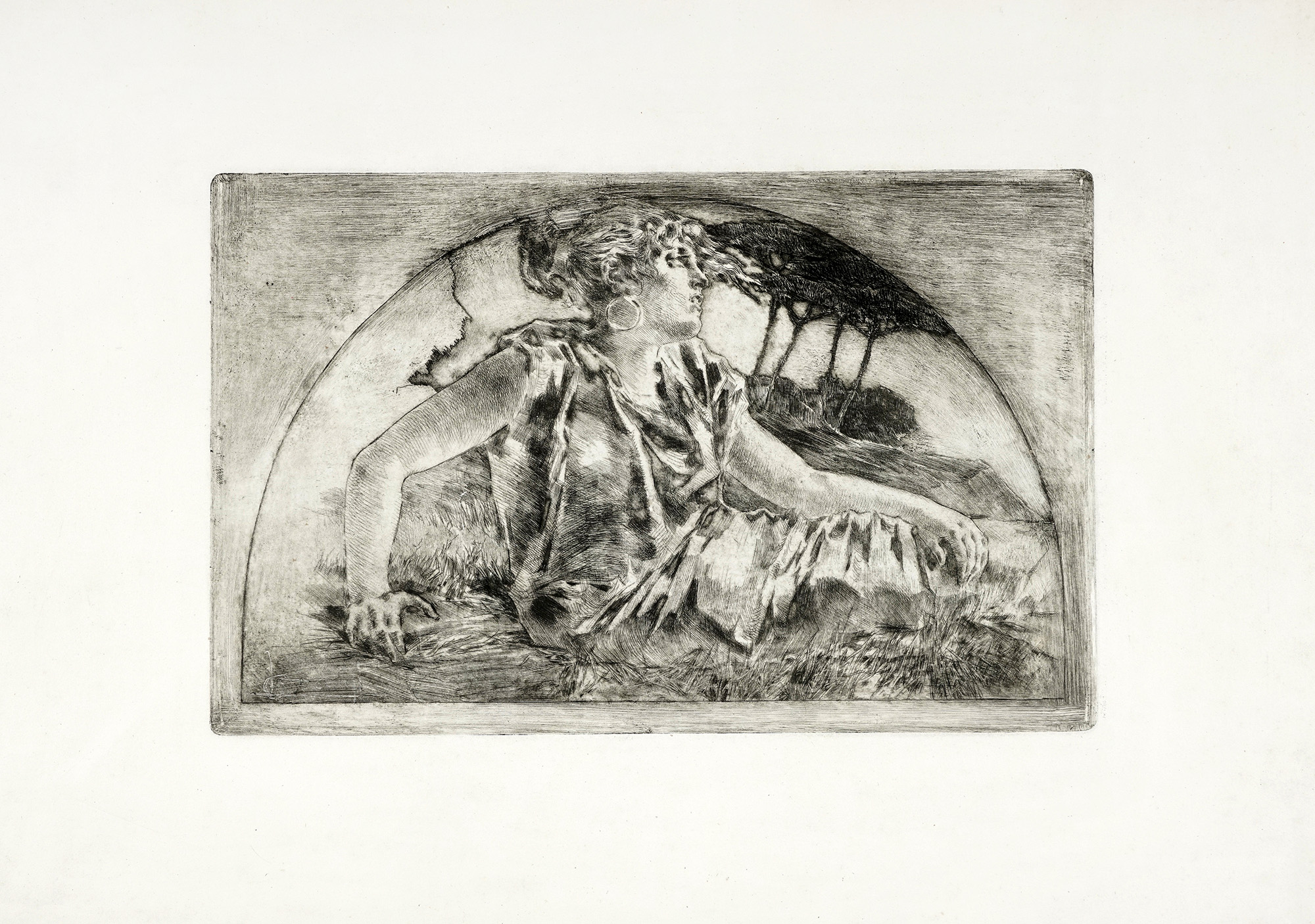 1) Ada. 1880. Acquaforte e monotipo su carta filigranata. mm 98x58. Foglio: mm 480x330. BIANCHI-GINEX, 9.