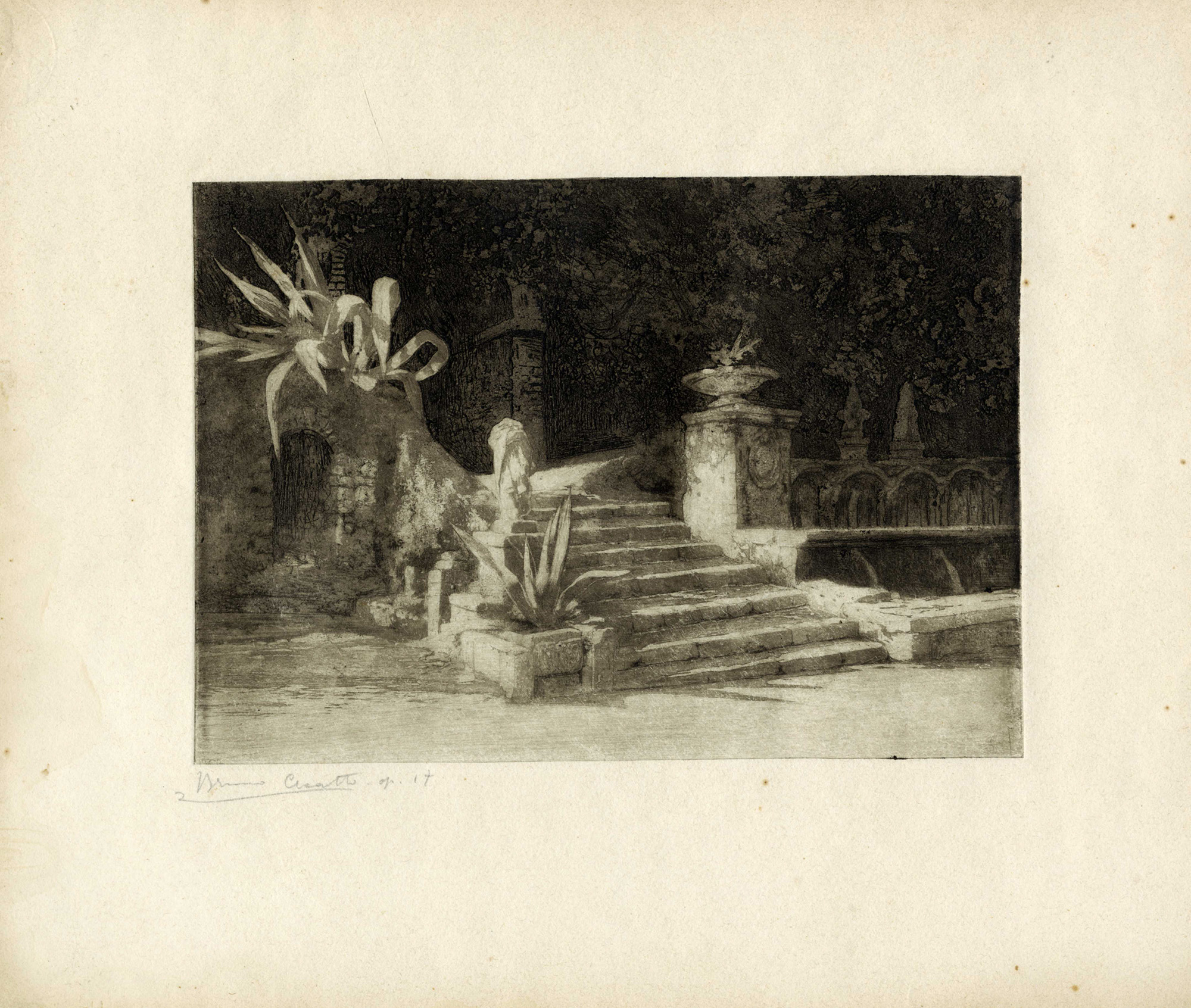 2) Scalinata. Acquaforte. mm 135x190. Foglio: mm 250x295.