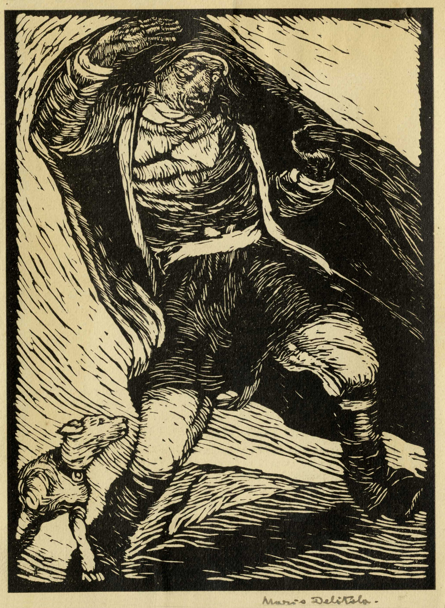 2) Figura con cane. Xilografia. mm 170x125. Foglio: mm 180x135