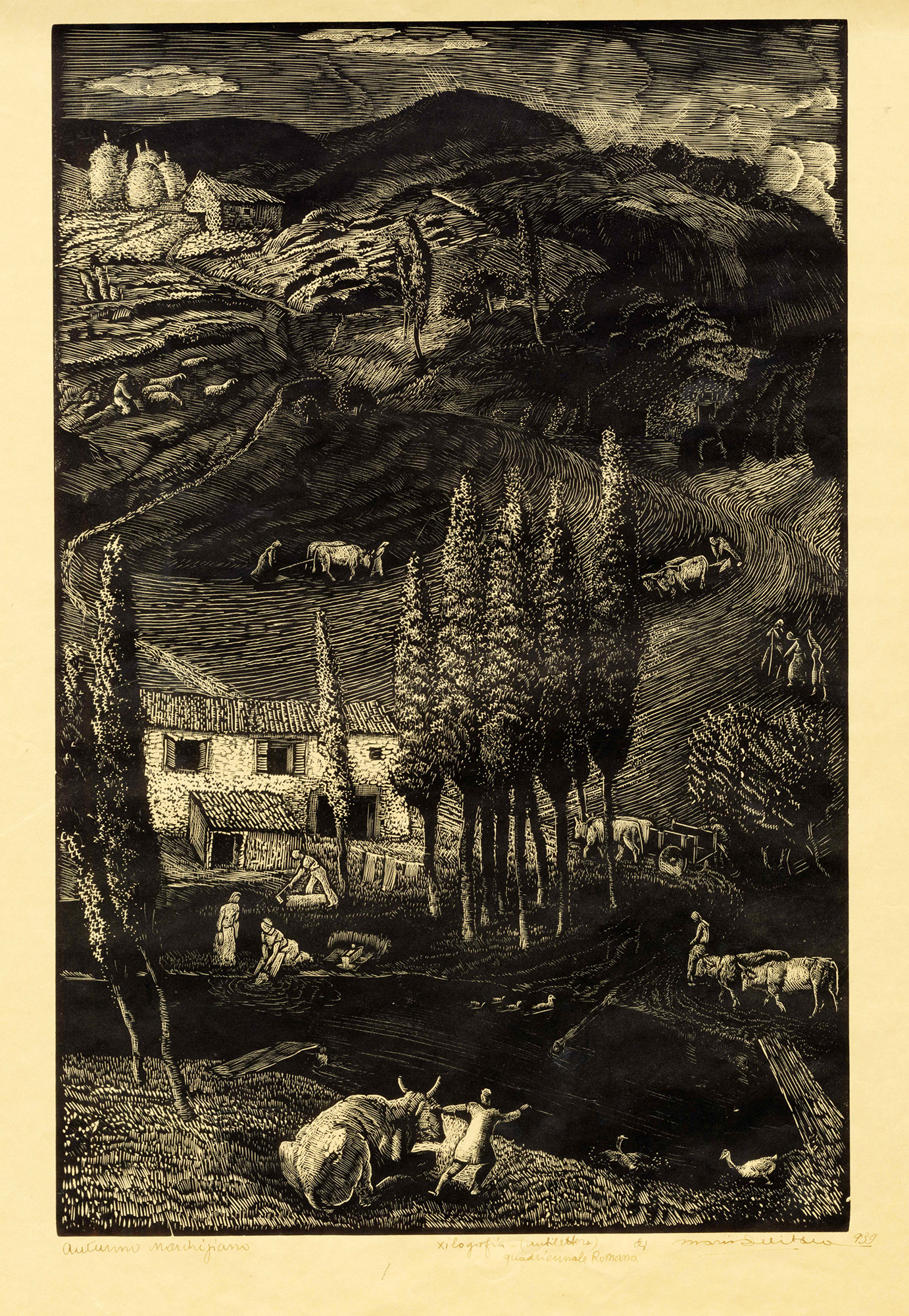 1) Autunno marchigiano. 1939. Xilografia. mm 358x235. Foglio: mm 475x325.