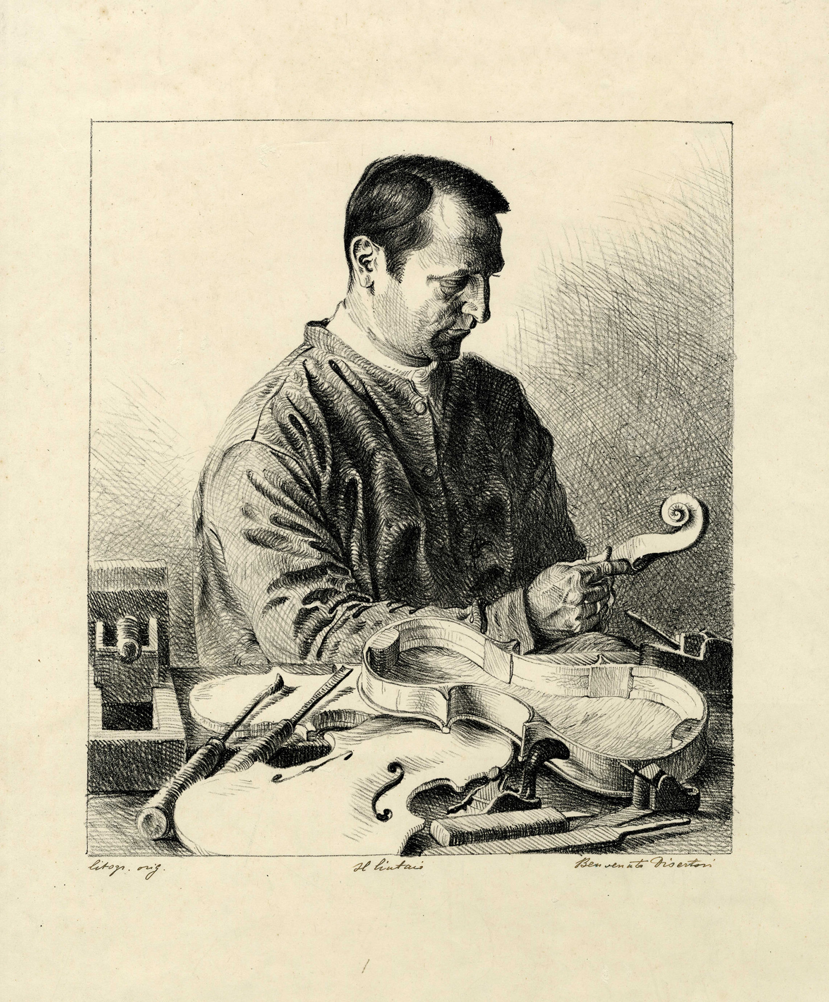 3) Il lituaio Carlo Bisiach. 1930-34. Litografia. mm 255x227. Foglio: mm 448x333.