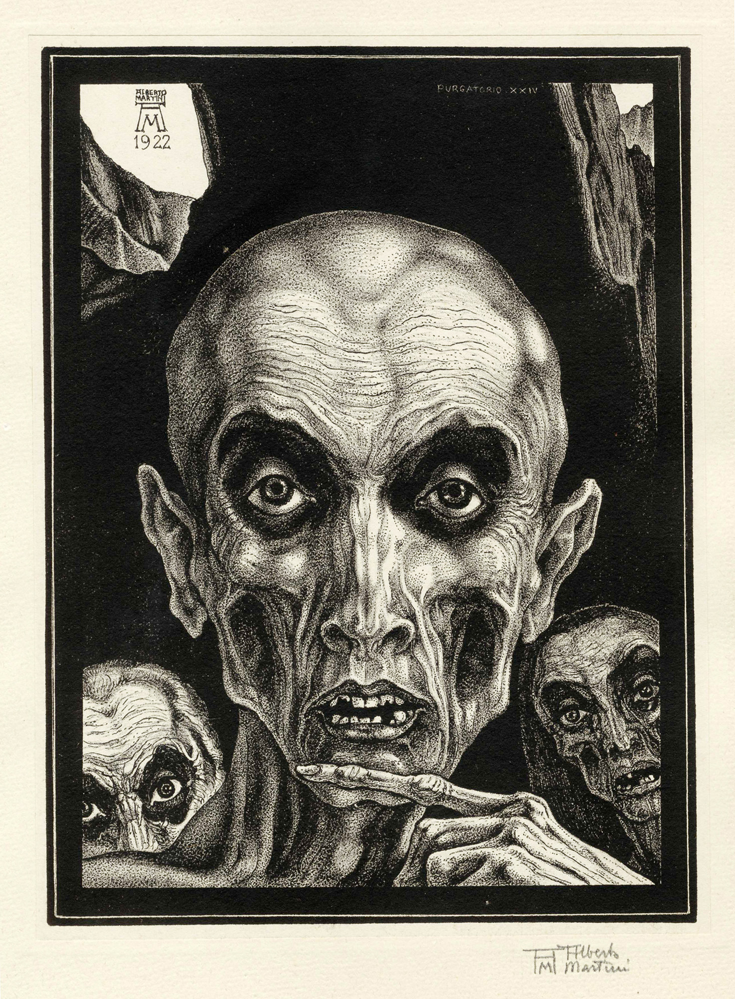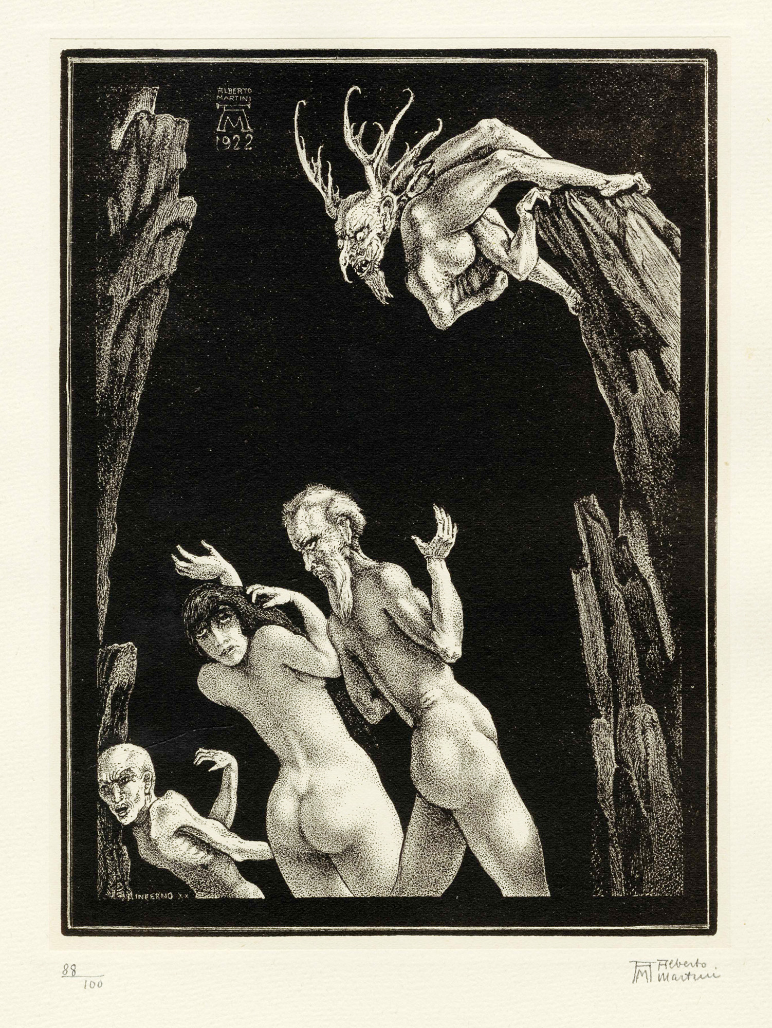 Alberto Martini, Lotto composto di 4 incisioni per la Divina Commedia. 1922.