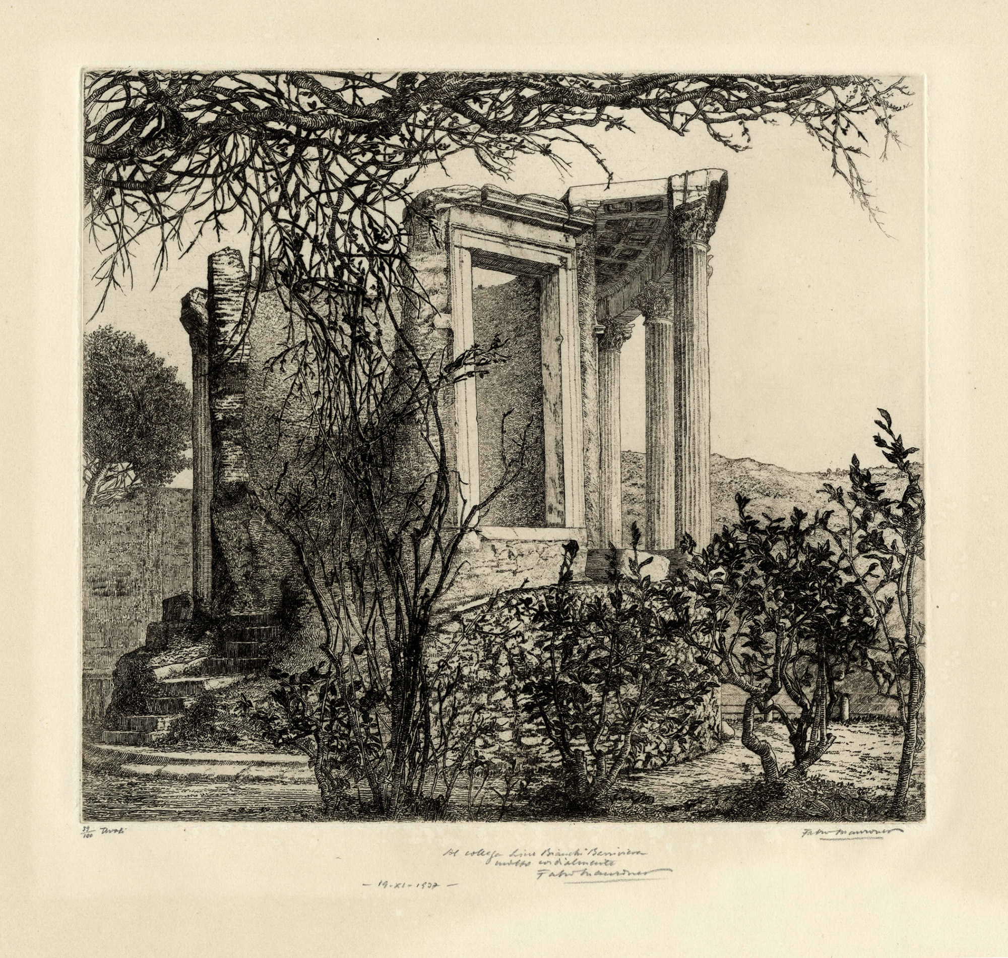 3) Tivoli. 1927. Acquaforte su carta vergellata con filigrana. mm 225x250. Foglio: mm 340x350.