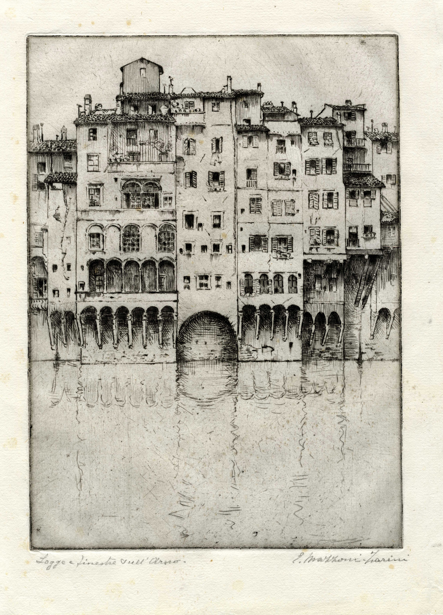 1) Logge e finestre sull'Arno. Acquaforte su carta vergellata. mm 275x195. Foglio: mm 354x280.