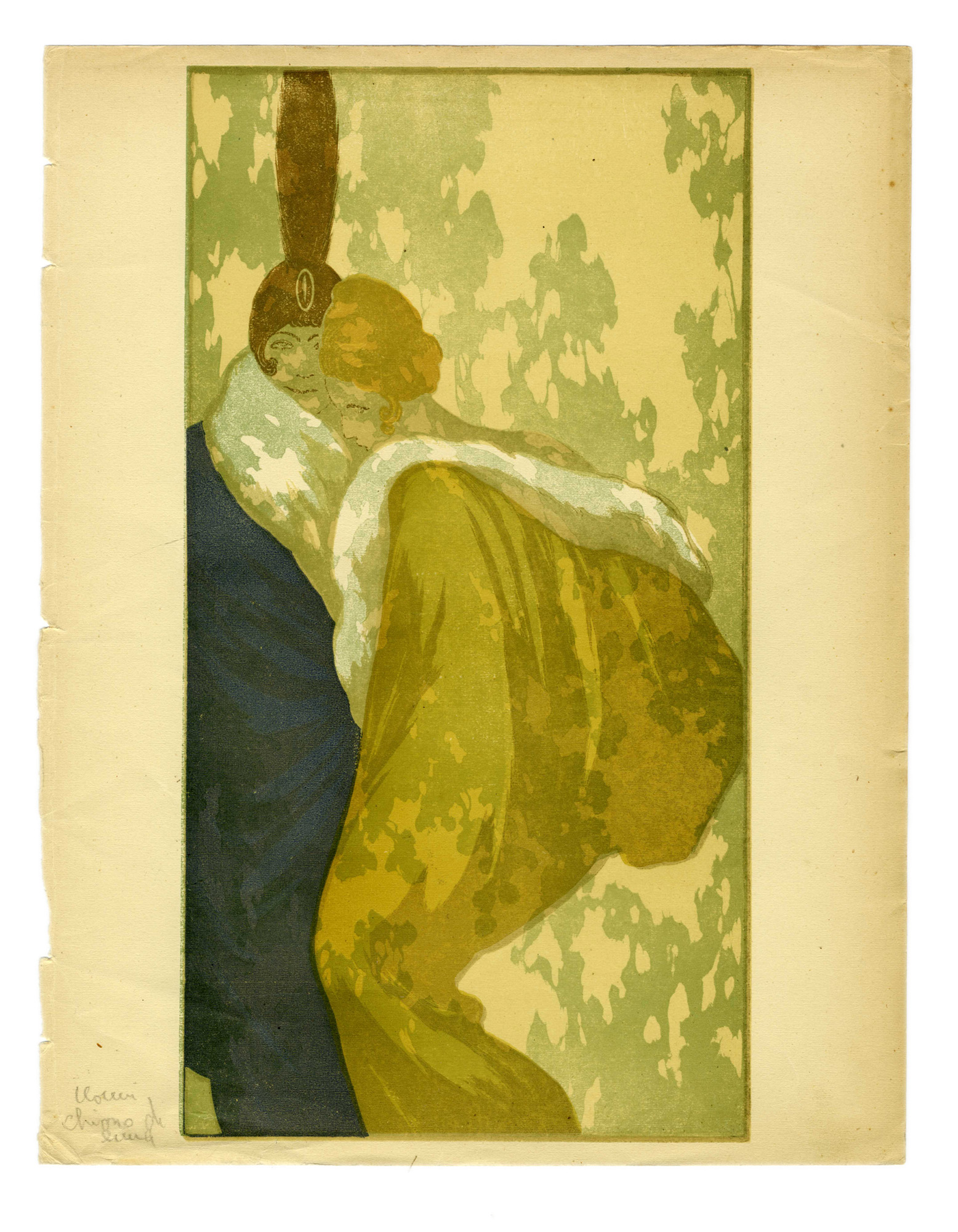 2) I fidanzati. 1925. Xilografia su carta vergellata. mm 120x75. Foglio: mm 300x240.