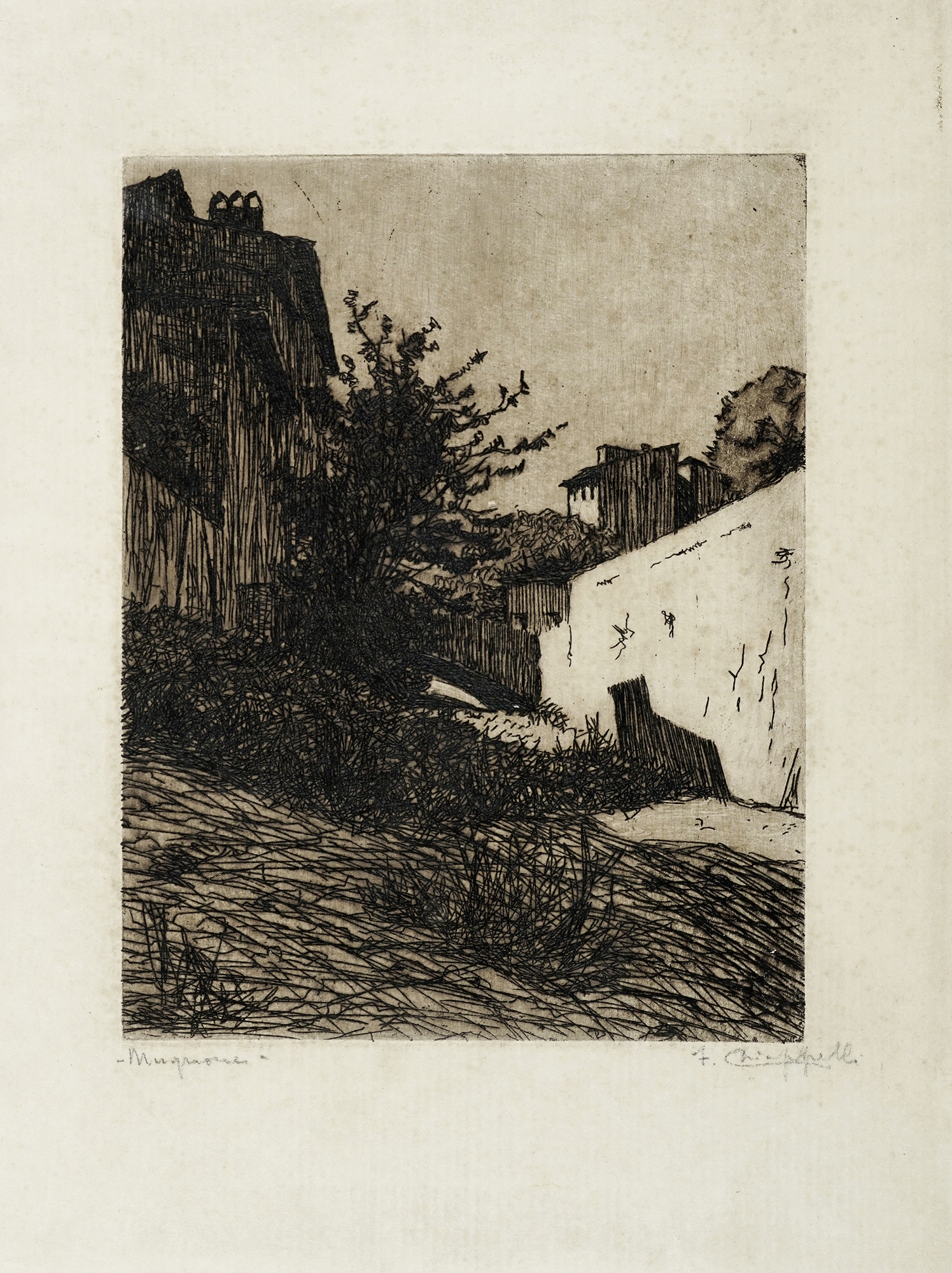 2) Francesco Chiappelli, Mugnone. Acquaforte su carta vergellata con filigrana a stella. mm 212x165. Foglio: 315x240.