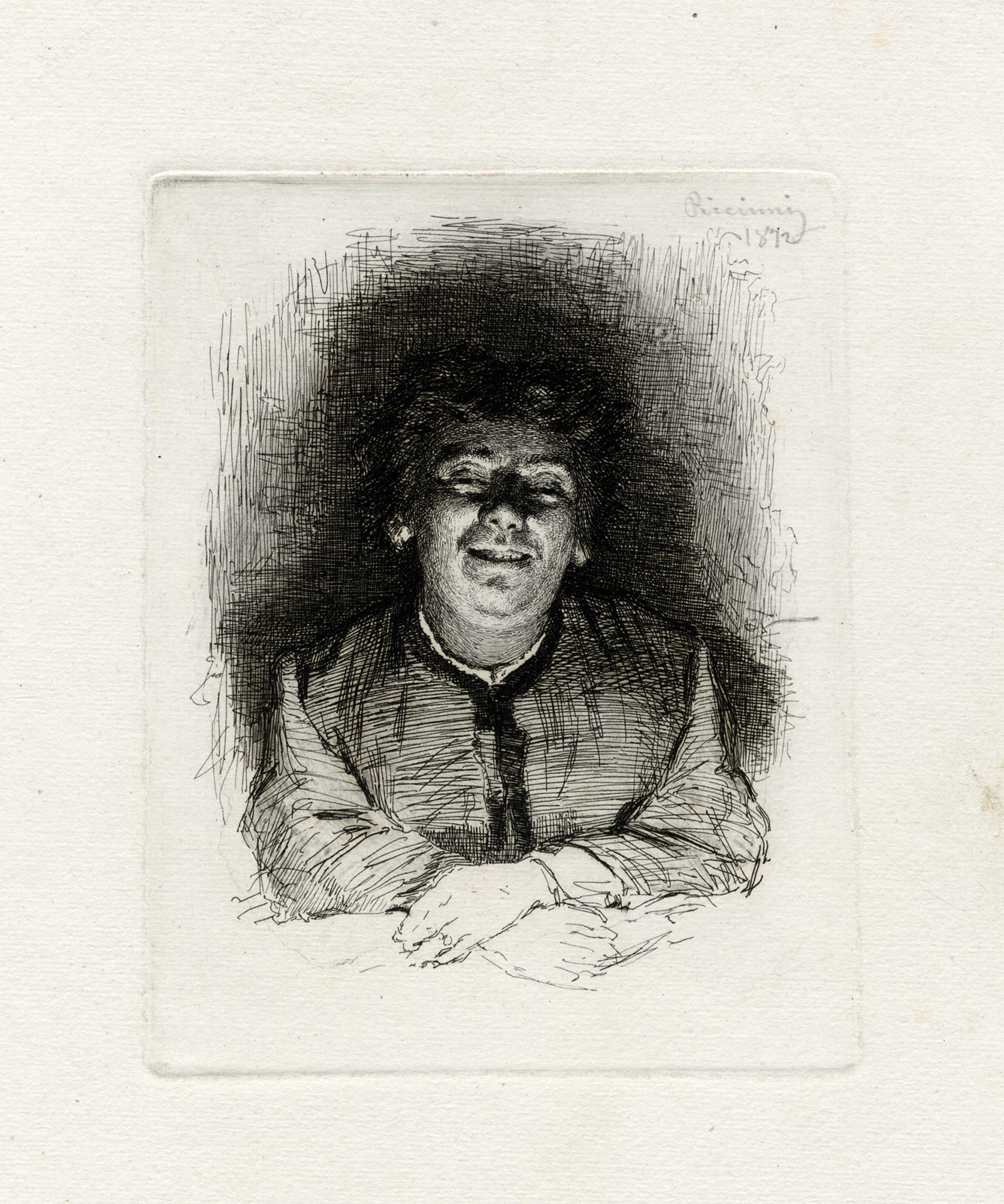 Monogrammata nella lastra in basso a sinistra, titolo in basso al centro. Acquaforte pubblicata ne' L'arte in Italia nel 1870.