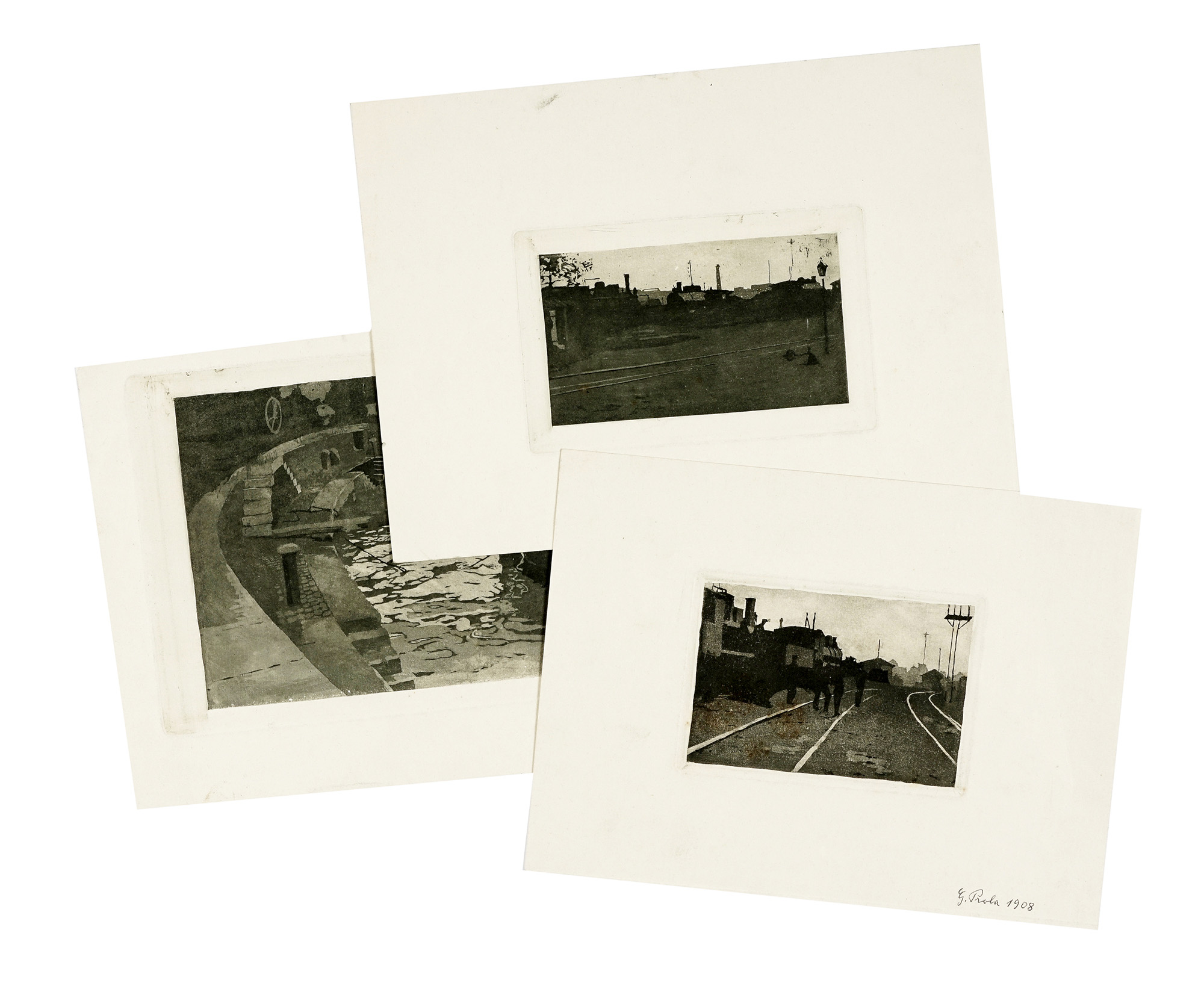 Gustavo Prola, Lotto composto di 10 incisioni ed 1 disegno. 1908-9.