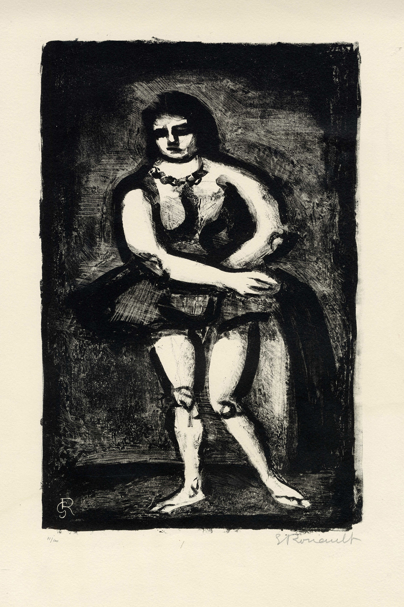 Monogrammata in lastra all'angolo inferiore sinistro. Firmata a matita in basso a destra e numerata a matita in basso a sinistra. Timbro a secco di galleria parigina all'angolo inferiore destro del foglio. Incisione dalle serie Maitres et petits maitres d'aujourd'hui. Es. 71/100.