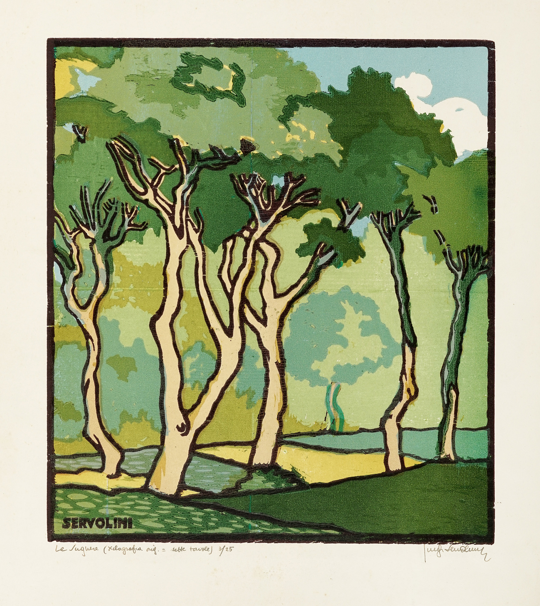 2) Le Sughere. Xilografia a 7 legni. mm 295x265. Foglio: mm 373x333.
