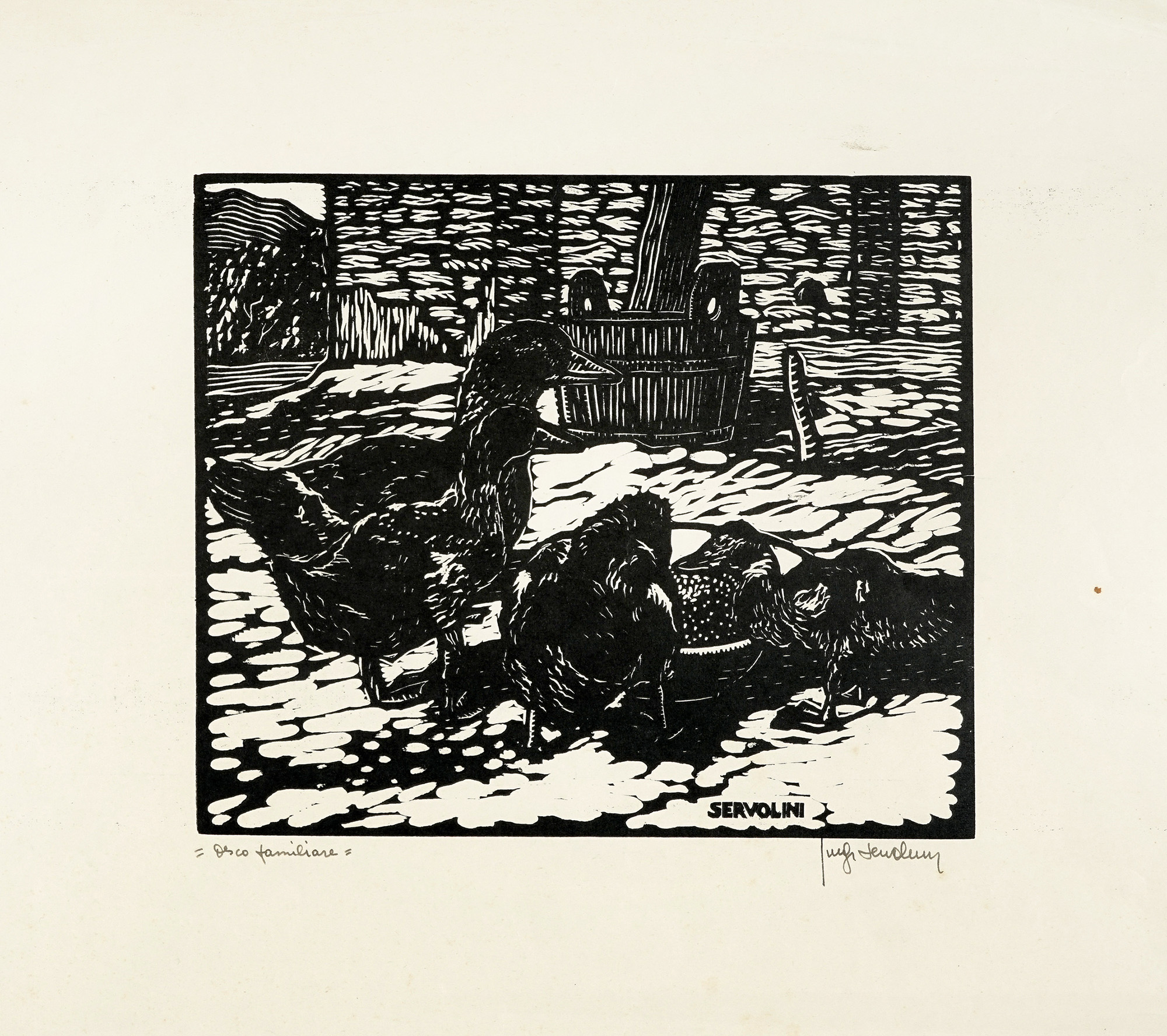 1) Desco Familiare. 1935. Xilografia. mm 195x230. Foglio: mm 342x386.