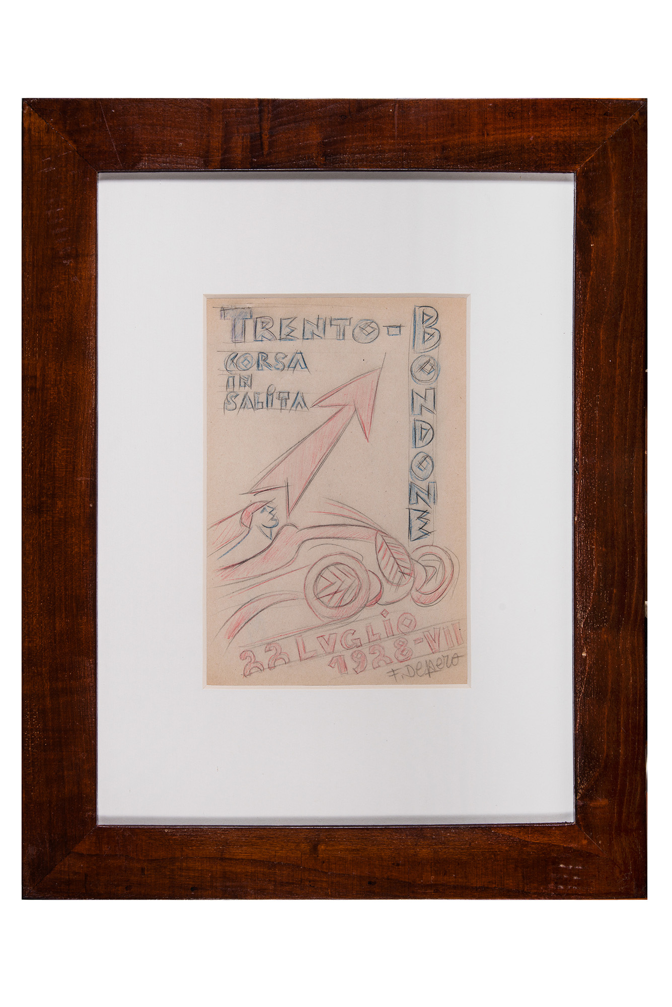 Si tratta di uno dei progetti preliminari che Depero realizzò ai fini della stampa della locandina promozionale prevista per la seconda edizione di questa corsa in salita. Questo, in particolare, fu tra quelli non utilizzati per sviluppare la versione finale a collage.