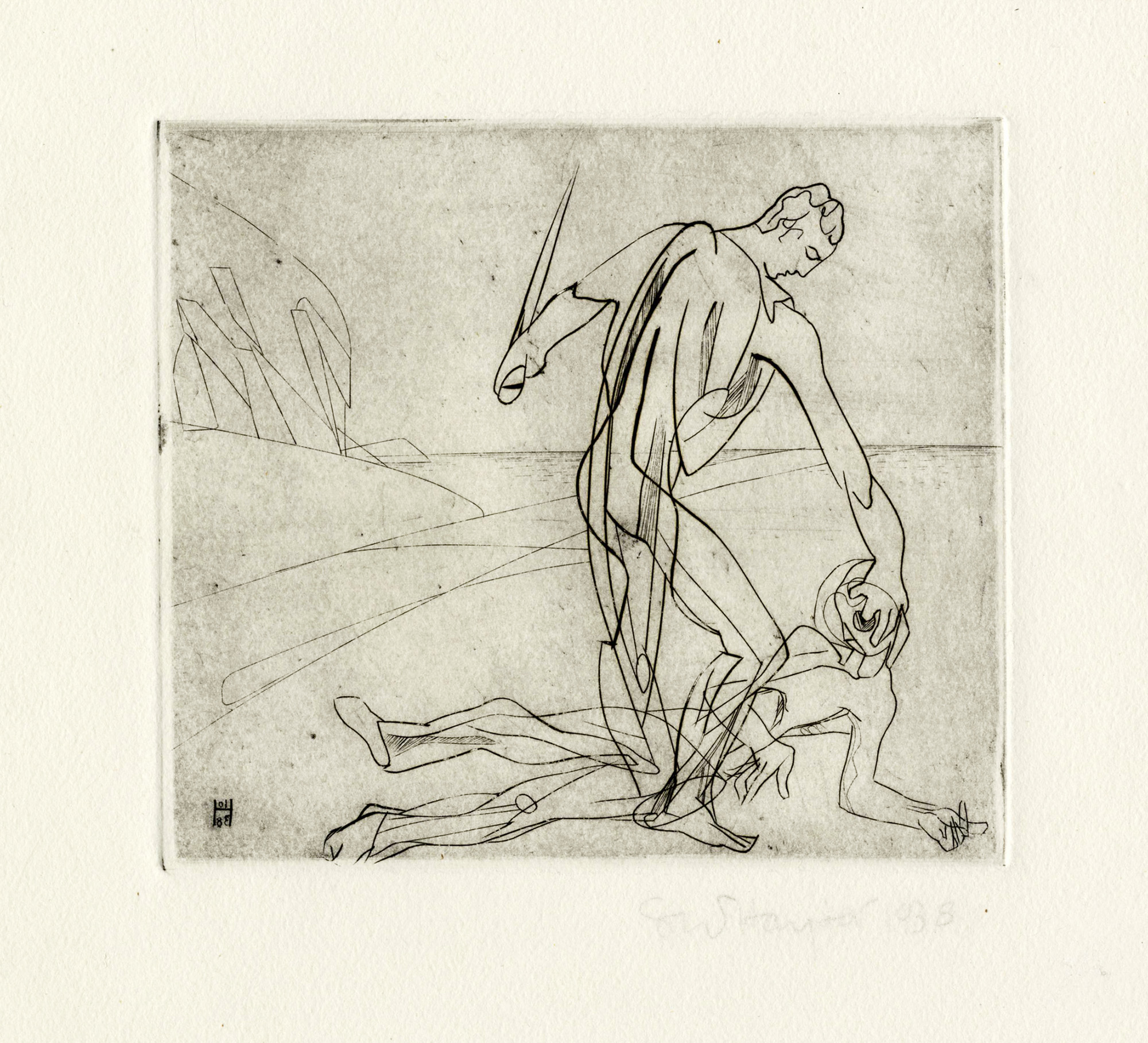 Firma e data a matita in basso a destra; monogramma e data in lastra in basso a sinistra.