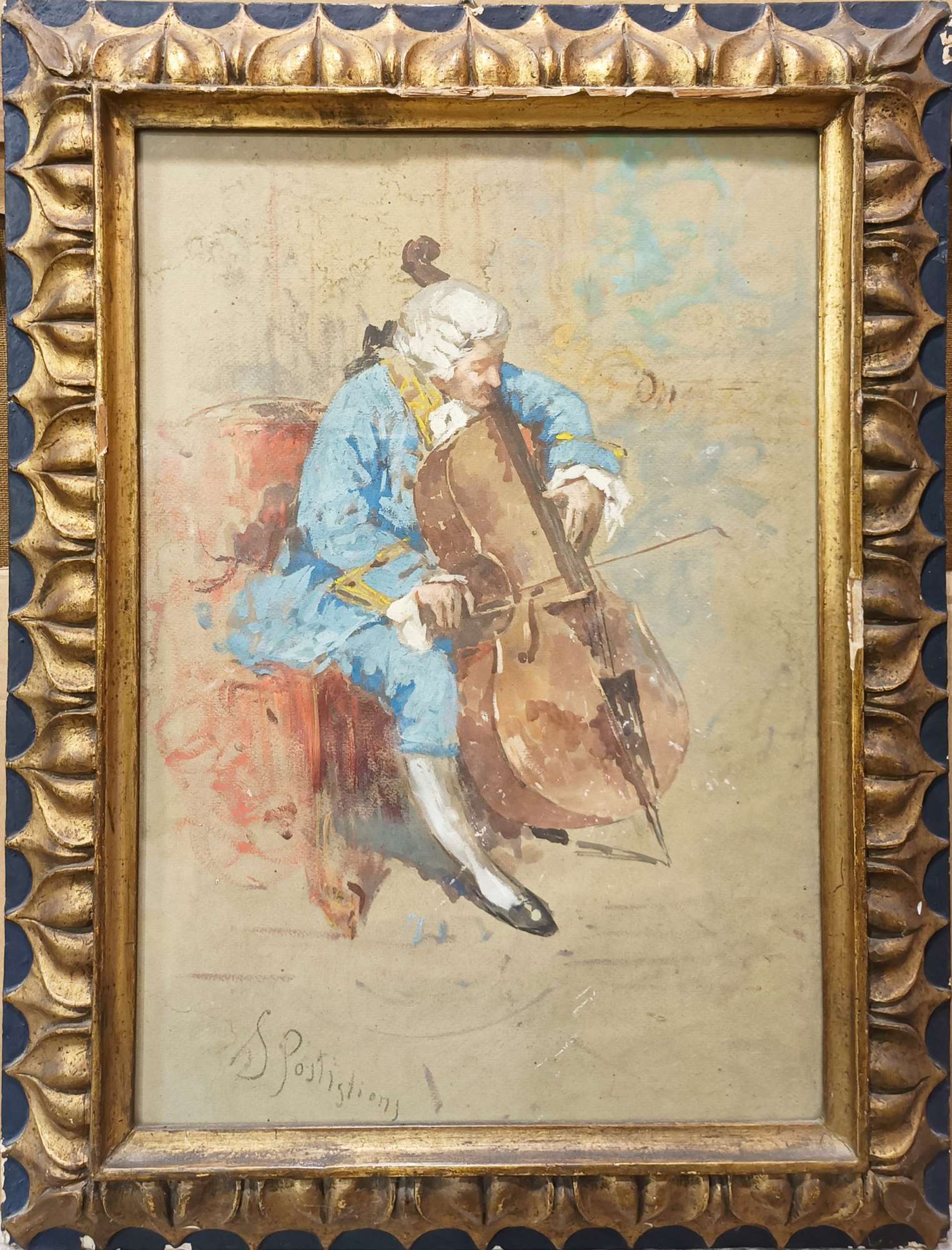 Salvatore Postiglione (Napoli 1861-1906), Suonatore di violoncello, XIX secolo, acquarello su carta, cm 43x30