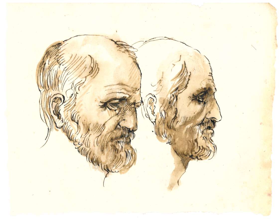Maestro italiano, Studio di teste, seconda metà XIX secolo, penna e inchiostro marrone, cm 15x18,4