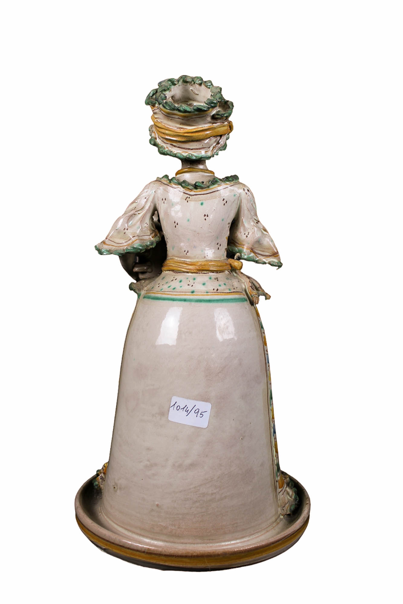 SCULTURA in maiolica policroma raffigurante figura femminile manifattura Alessi Caltagirone XX secolo h cm 31 x 18