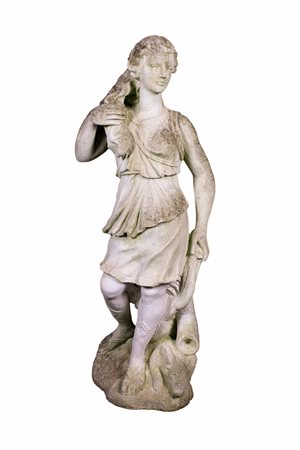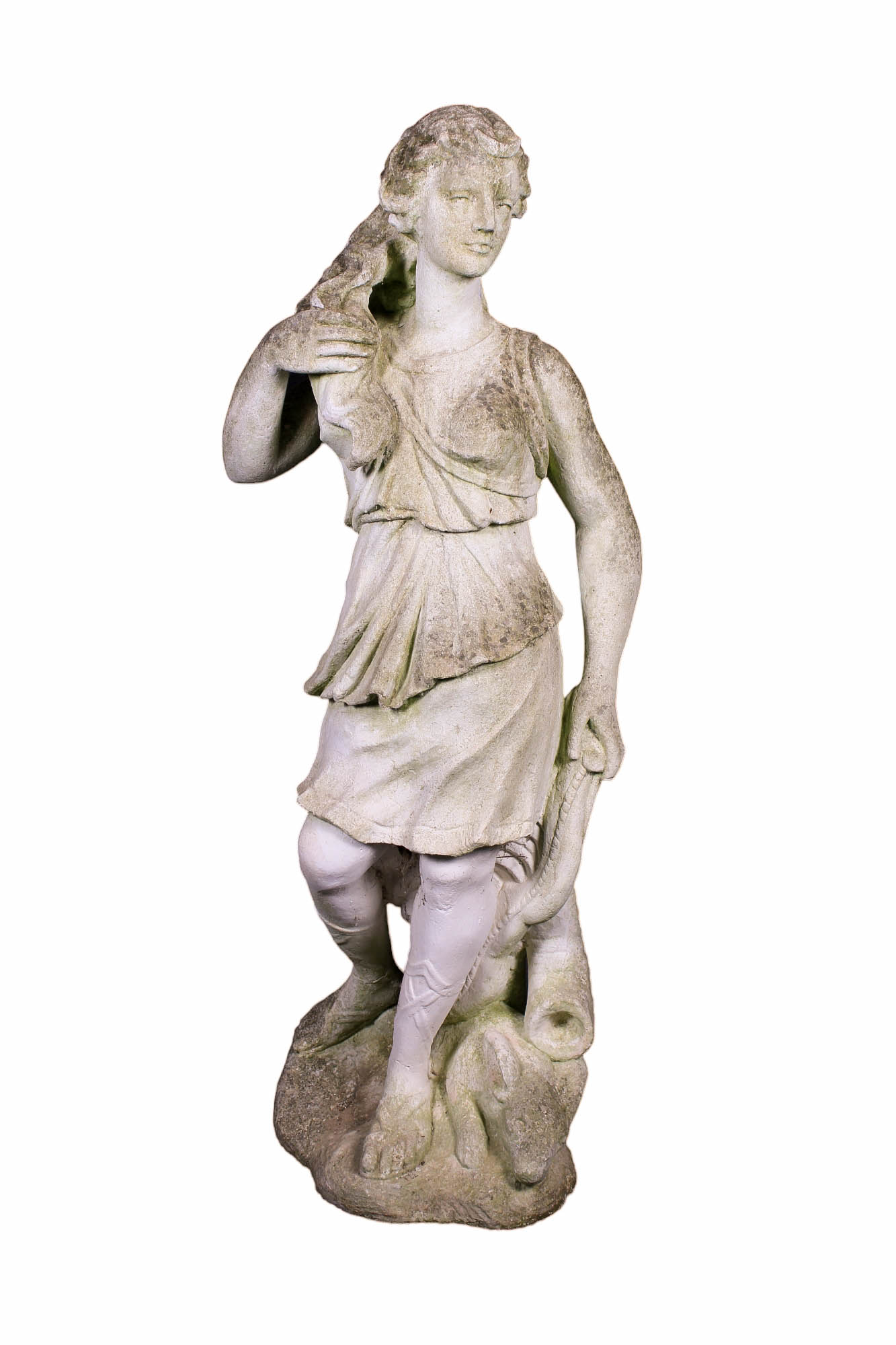 SCULTURA in impasto di pietra raffigurante Diana Italia XX secolo h cm 132 x 45 x 35
